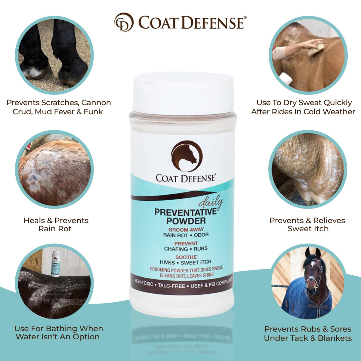 Coat Defense Daily Grooming Powder For Horses | Dry Shampoo With Natural Ingredients | 64 Oz Formula For Fresh, Healthy-Looking