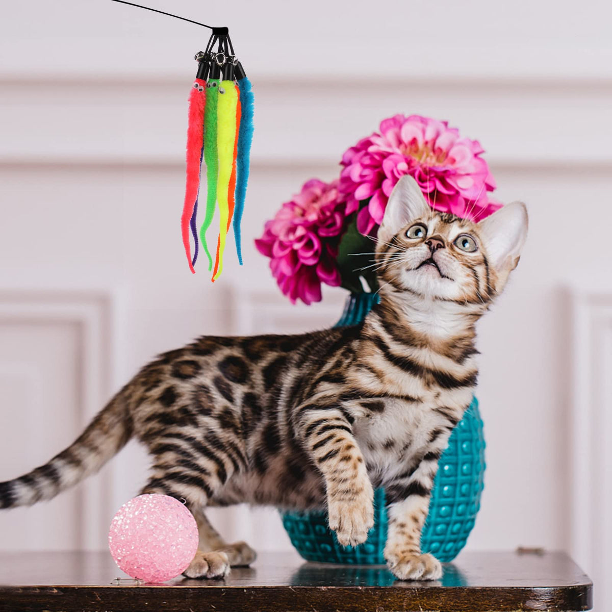 Cobee 12Pcs Cat Worm Toy Refills, Cat Wand Toy Replacement Refills Furry Tail Worm With Bells Assorted Cat Interactive Toy Refills With Bell For Cat Kitten Worm Refills Attachment For Cat Wand