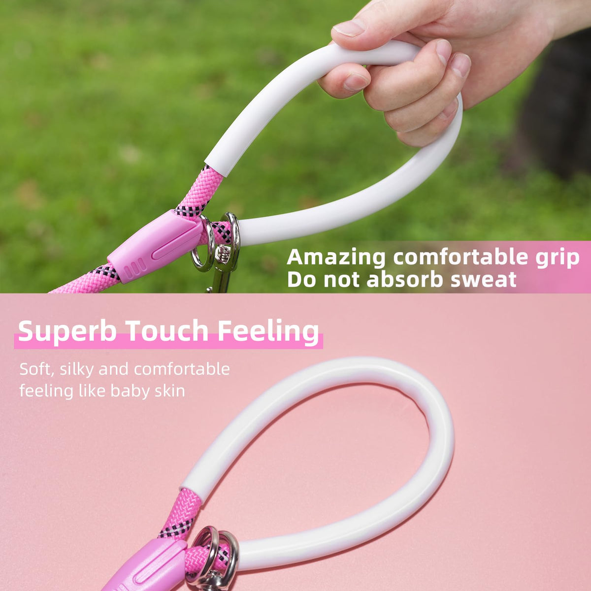 Codepets Heavy Duty Nylon Dog Leash 30FTx1/2in Pink with Comfortable Silicone Handle Highly Reflective No Tangle for Medium Larg
