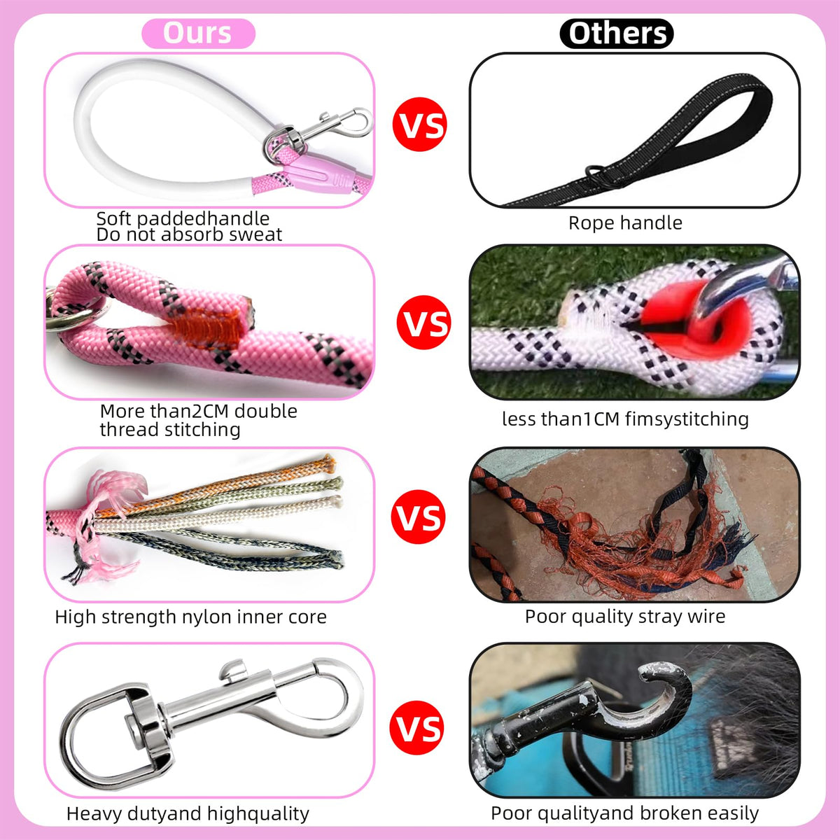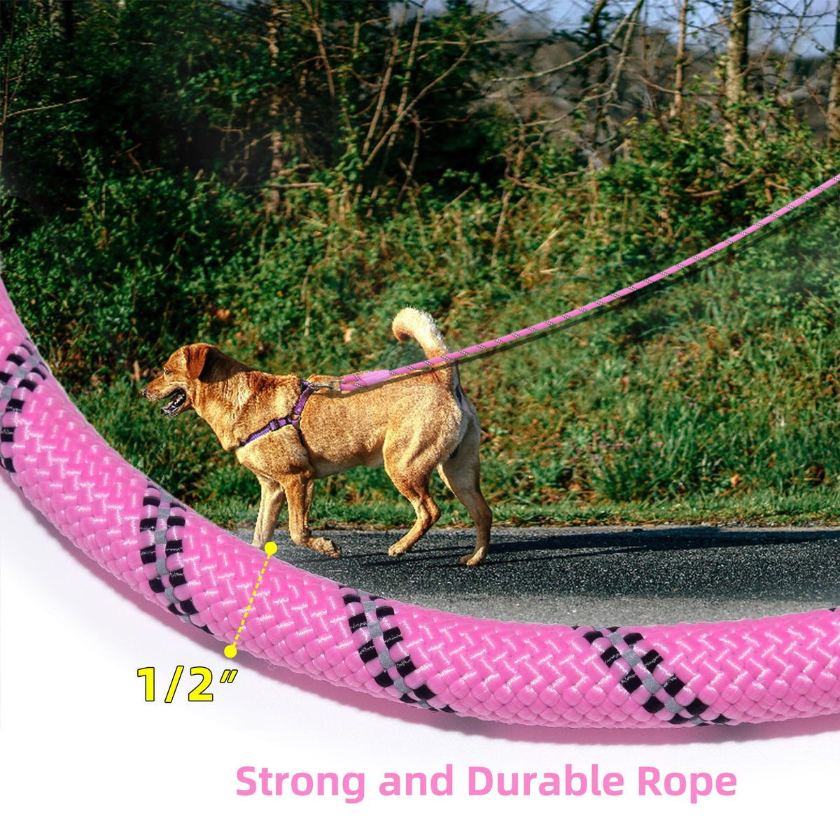 Codepets Heavy Duty Nylon Dog Training Leash 20FTx1/2in Pink with Comfortable Silicone Handle Highly Reflective No Tangle for Me
