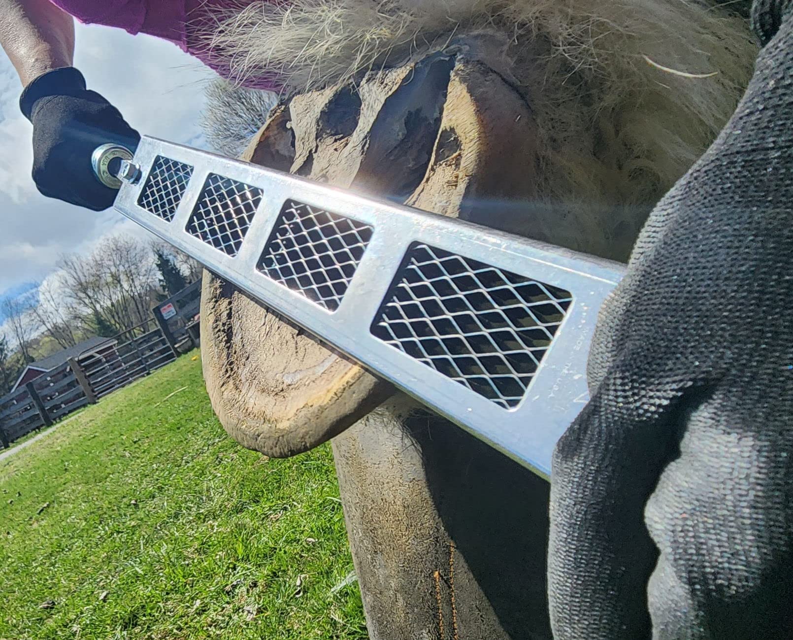 Choose Fine, Medium Or Aggressive. This Rasp Will Not Clog And Doesnt Dull Quickly. You Can Trim A Lot More Horses Than The Average Rasp, Which Saves You Money. Just Replace The Refill When Needed, Keep The Frame. Patented Design Cuts Quicker & Easier Which Limits Wear & Tear On Your Body. This Rasp Was Designed By A Farrier With Decades Of Experience. He Was Frustrated With How Quickly Traditional Rasps Had To Be Replaced And How Inefficient They Were. The Dymondback Proved His Job Can Be Easier, Quicker And More Profitable. Includes: Frame And Refill. Handle Not Included To Purchase, Search Id# B0Bmt4M66D . Optional End Cap Is Available For Added Hand Protection. To Purchase, Search # B0Bvmng7Yq . Made With High Quality Steel. Used Rasps Are Not Returnable. Made In The Usa. Call Us At 203-746-8055 With Any Questions! Dimensions: 18-1/2'' X 2-1/4 X 3/8'' Cutting Surface: 14'' X 2''