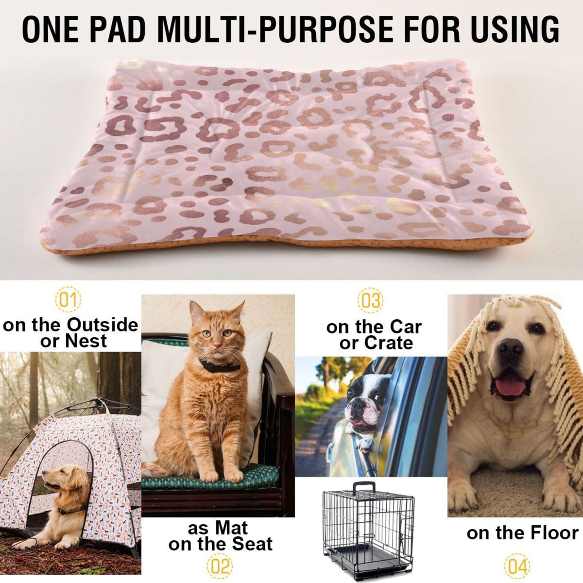 Coikll Leopard Pink Pet Bed Pad Soft Dog Bed Mat With Anti-Slip Bottom, Machine Washable Crate Pad Mattress For Dog Sleeping- 24