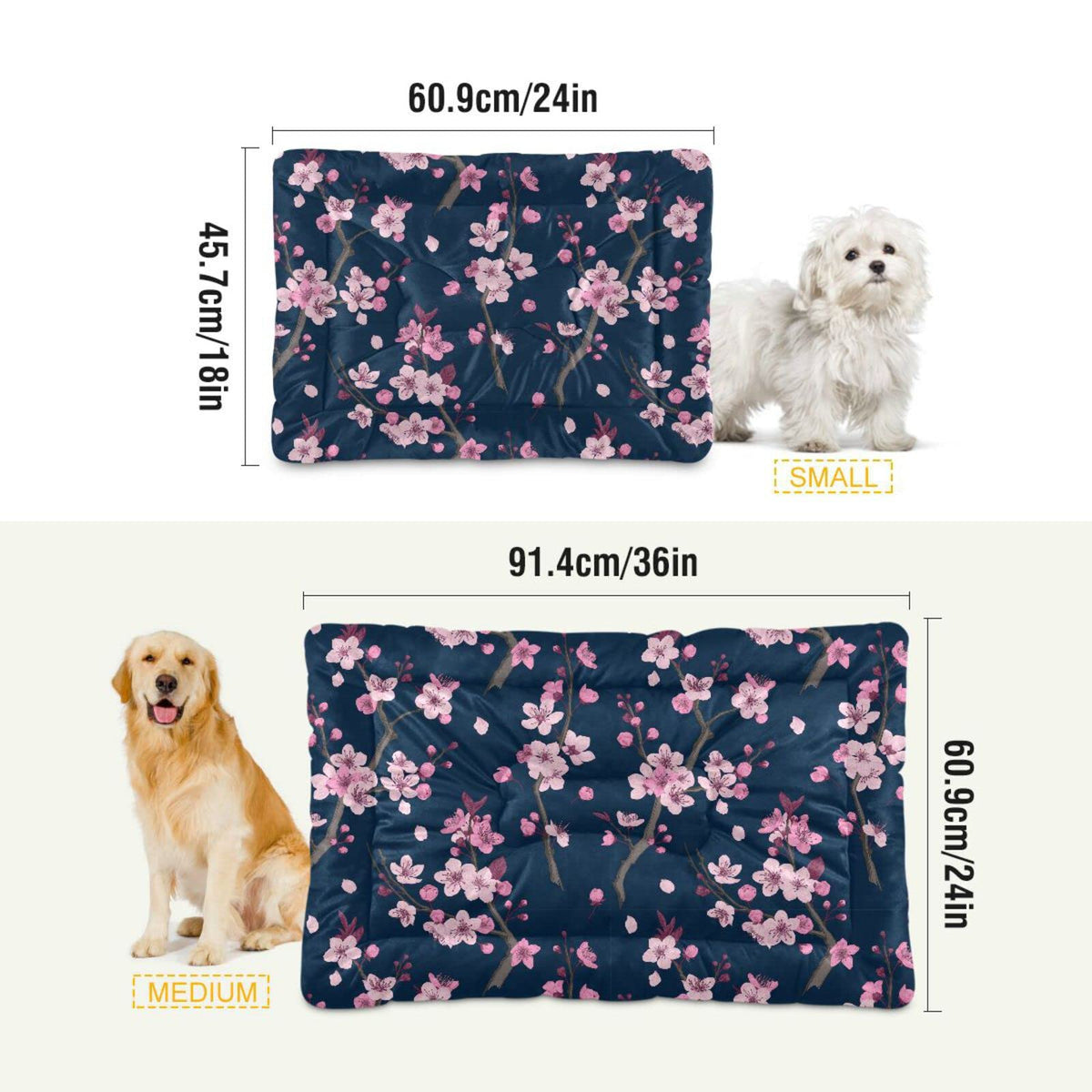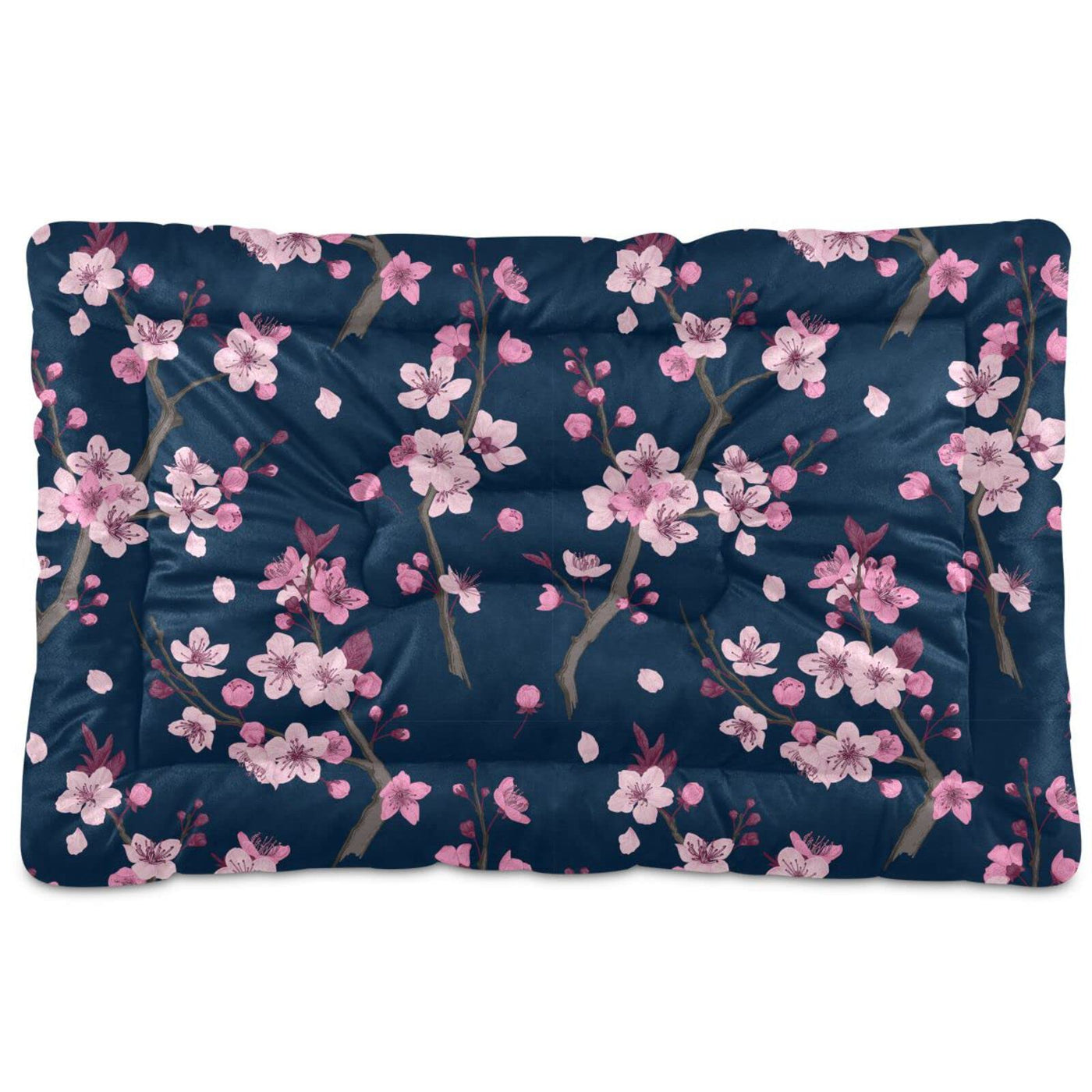 Coikll Pink Cherry Blossom Branches Pet Bed Pad Soft Dog Bed Mat With Anti-Slip Bottom, Machine Washable Crate Pad Mattress For