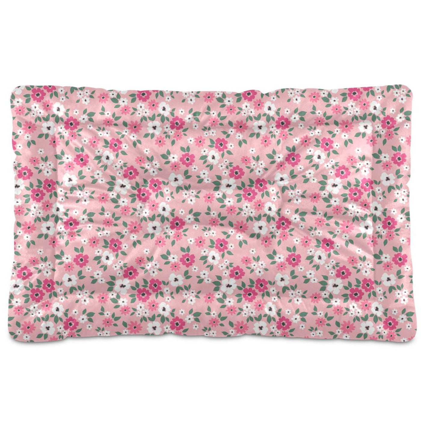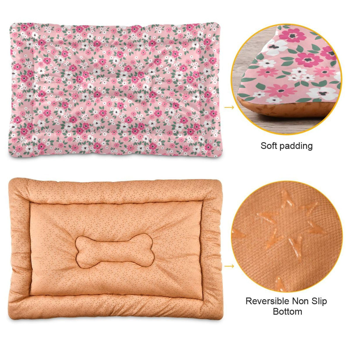 Coikll Pink Floral Pet Bed Pad Soft Dog Bed Mat With Anti-Slip Bottom, Machine Washable Crate Pad Mattress For Dog Sleeping