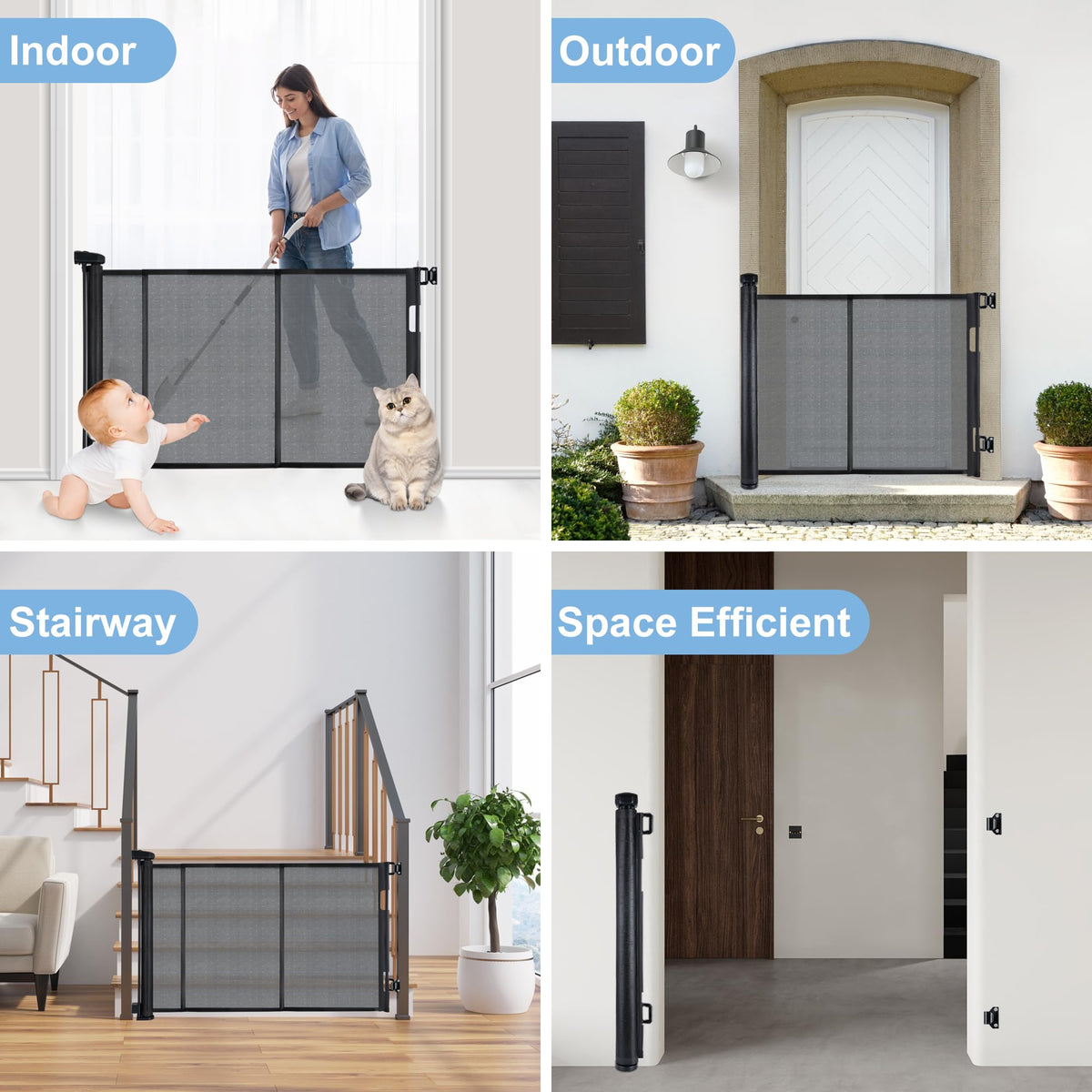 Introducing our Retractable Baby Gate, a perfect blend of safety and convenience. Standing 34 inches tall and extending up to 120 inches wide, it fits various doorways and staircases, making it ideal for families with children and pets. The easy one-handed operation and top-mounted safety lock ensure quick access and secure containment. Its space-saving retractable design keeps your home looking tidy while meeting high safety standards. Enjoy peace of mind with this reliable solution for a safer home!
