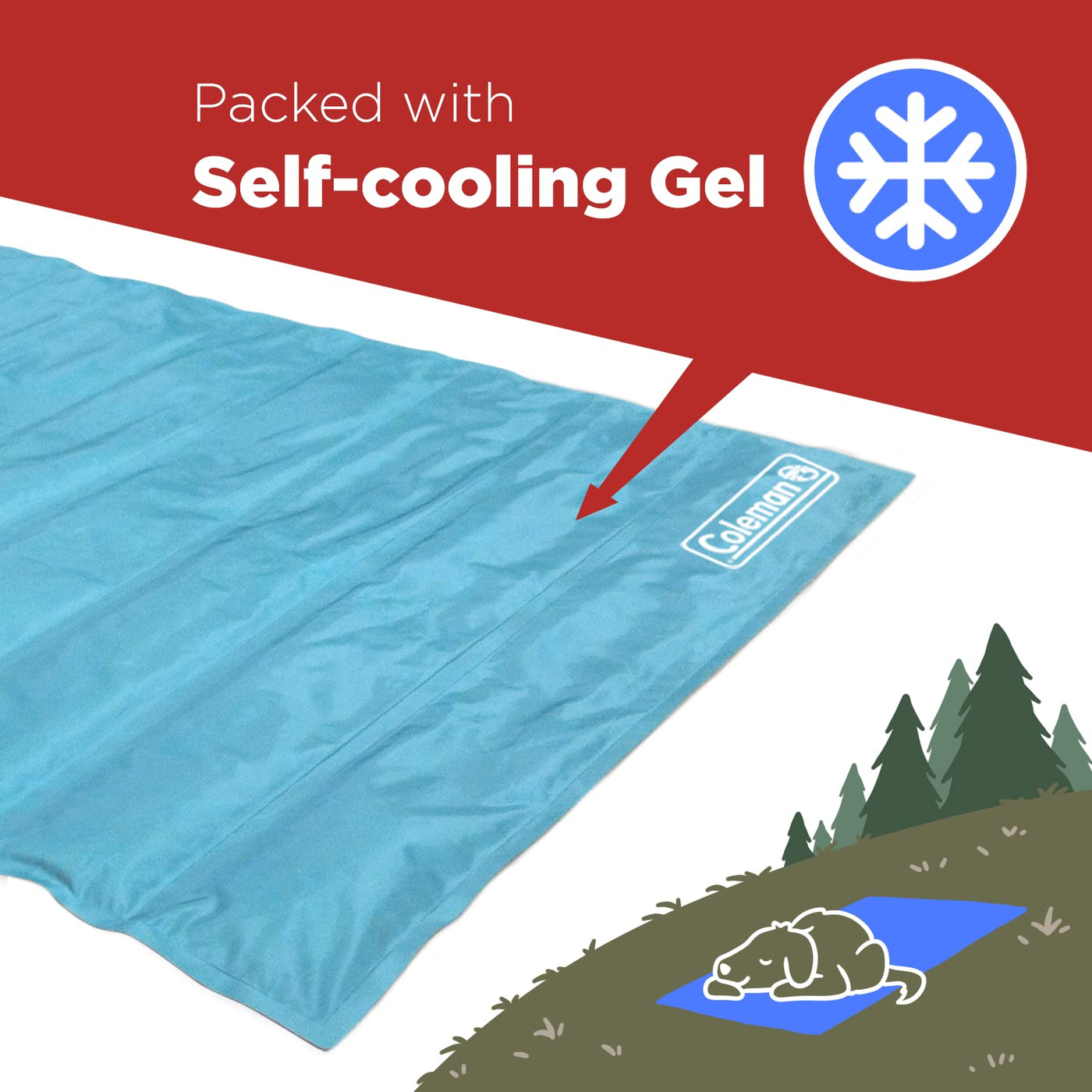 Q: How does the Coleman Comfort Cooling Gel Pet Pad work?A: The Coleman Comfort Cooling Gel Pet Pad uses a self-cooling gel that is activated by your pet's weight and body heat. This gel reduces the surface temperature by about 5 to 10 degrees, providing a cool resting place for your dog or cat without the need for electricity or refrigeration.