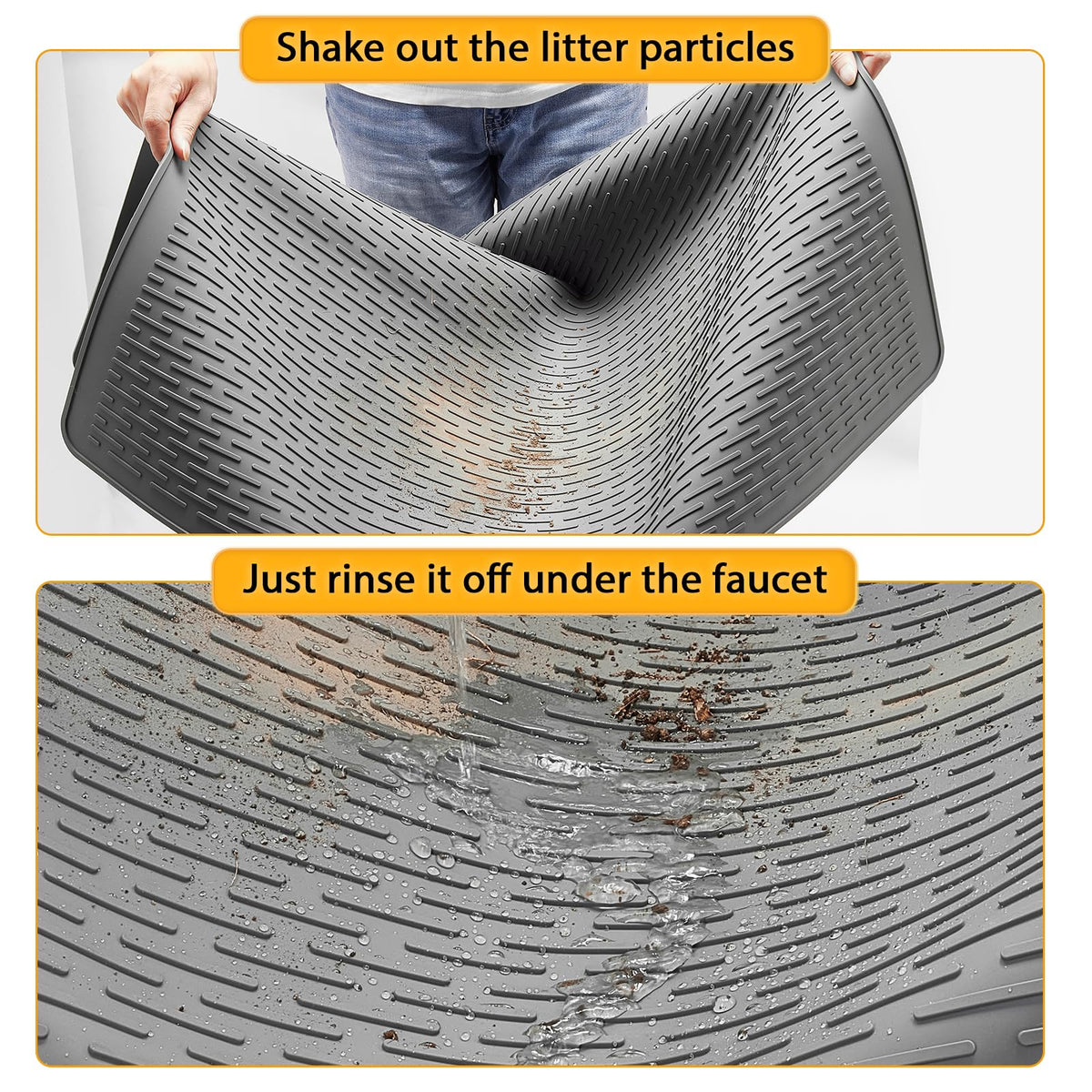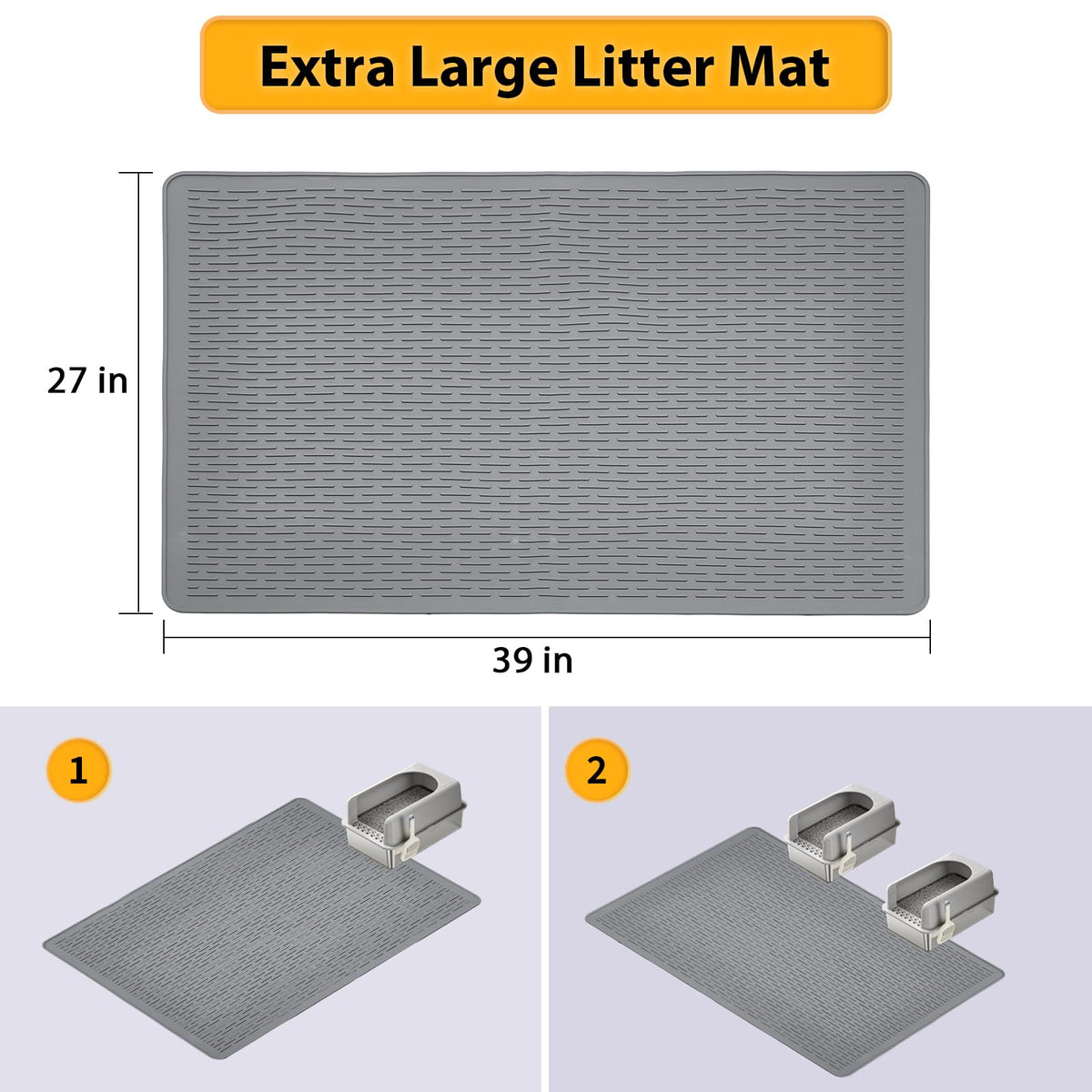 Features:&Nbsp;Cat Litter Mat Color: Black/Grey Size: 39X27In/34X22In Material: Natural Rubber 1. Cat Litter Mats For Indoor Cats Help Track And Trap Litter, And Are Easy To Clean And Reduce Litter Messes. 2. Litter Mats Are Great For Securing The Litter Box, Controlling The Litter.&Nbsp; 3. Large Litter Mat For Litter Box Is Oversized And Has A Large Footprint.