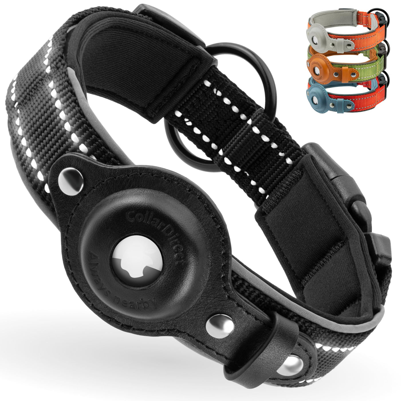 Airtag Dog Collar designed for Apple Airtag Reflective Nylon and Neoprene Leather Holder