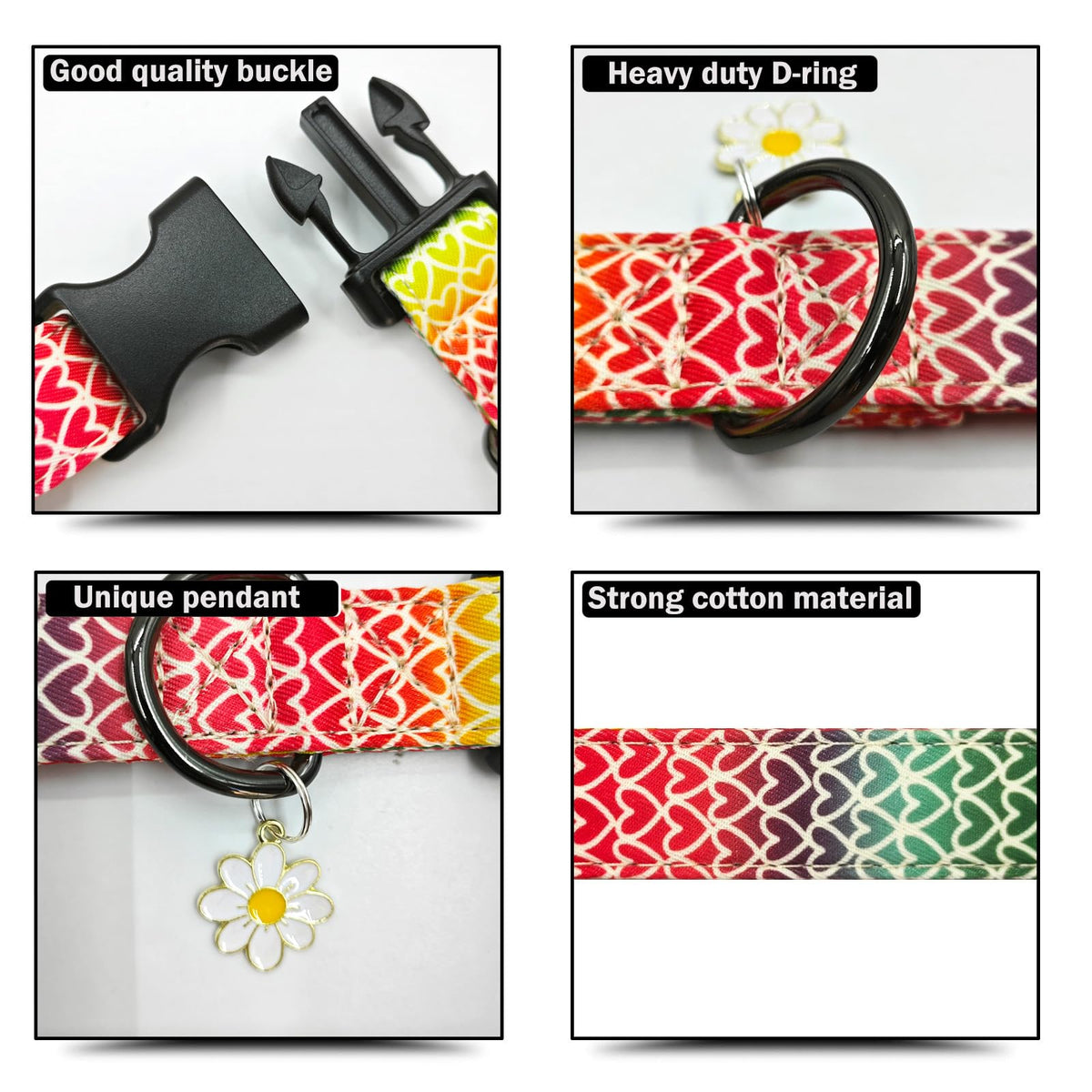Colorful Heart Dog Collar With Pendant, Durable And Soft Cotton Dog Collars For Small Large Female And Male Dogs Pets(Heart S)