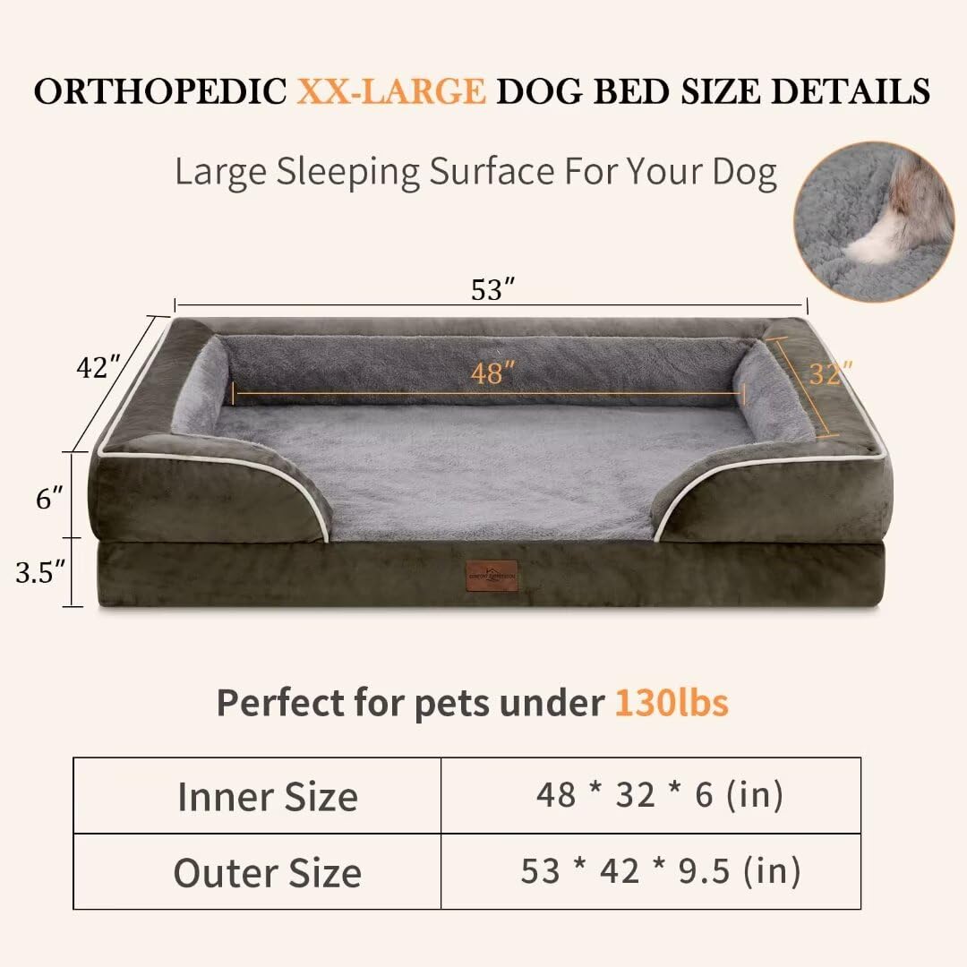 Comfort Expression Cooling Dog Bed for Giant Dogs Orthopedic Memory Foam Dog Bed XXL Dog Bed for Extra Large Dogs Waterproof Dog Bed with Bolster & Removable Cover(XX-large Olive Green)