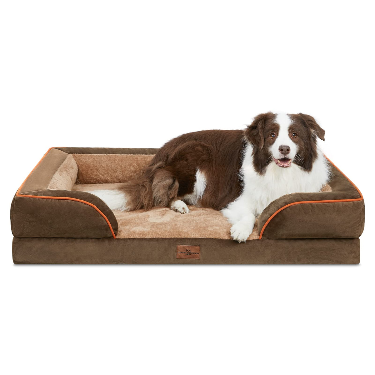 Comfort Expression Dog Beds For Extra Large Dogs, Waterproof Orthopedic Foam Xl Dog Bed With Bolster, Washable Dog Bed Sofa Pet Bed With Removable Cover & Non-Slip Bottom(X-Large,Brown)
