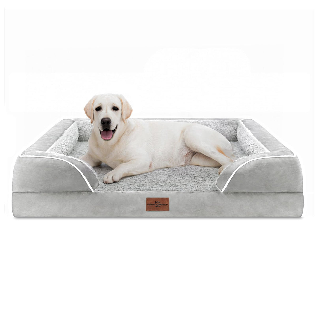 Comfort Expression Jumbo Dog Bed For Extra Large Dogs, Waterproof Orthopedic Jumbo Breed Dog Bed, Pv Washable Dog Sofa Bed With Removable Cover & Non-Slip Bottom(Jumbo,Grey White)