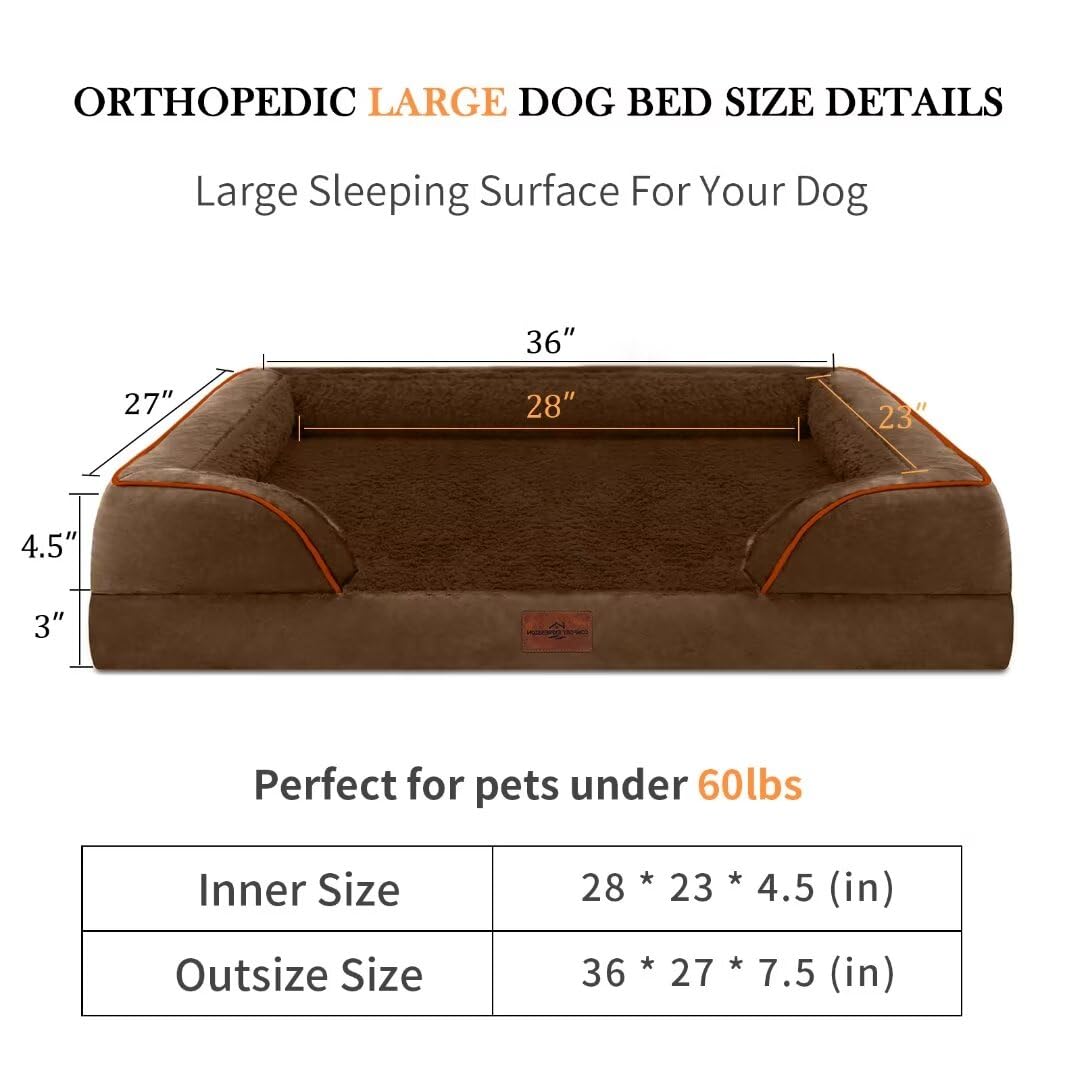 Comfort Expression Large Dog Beds Orthopedic Foam Waterproof Dog Beds for Large Dogs Comfy Pet Bed Sofa with Washable Removable Cover & Non-Slip Bottom(Large Chocolate Brown)