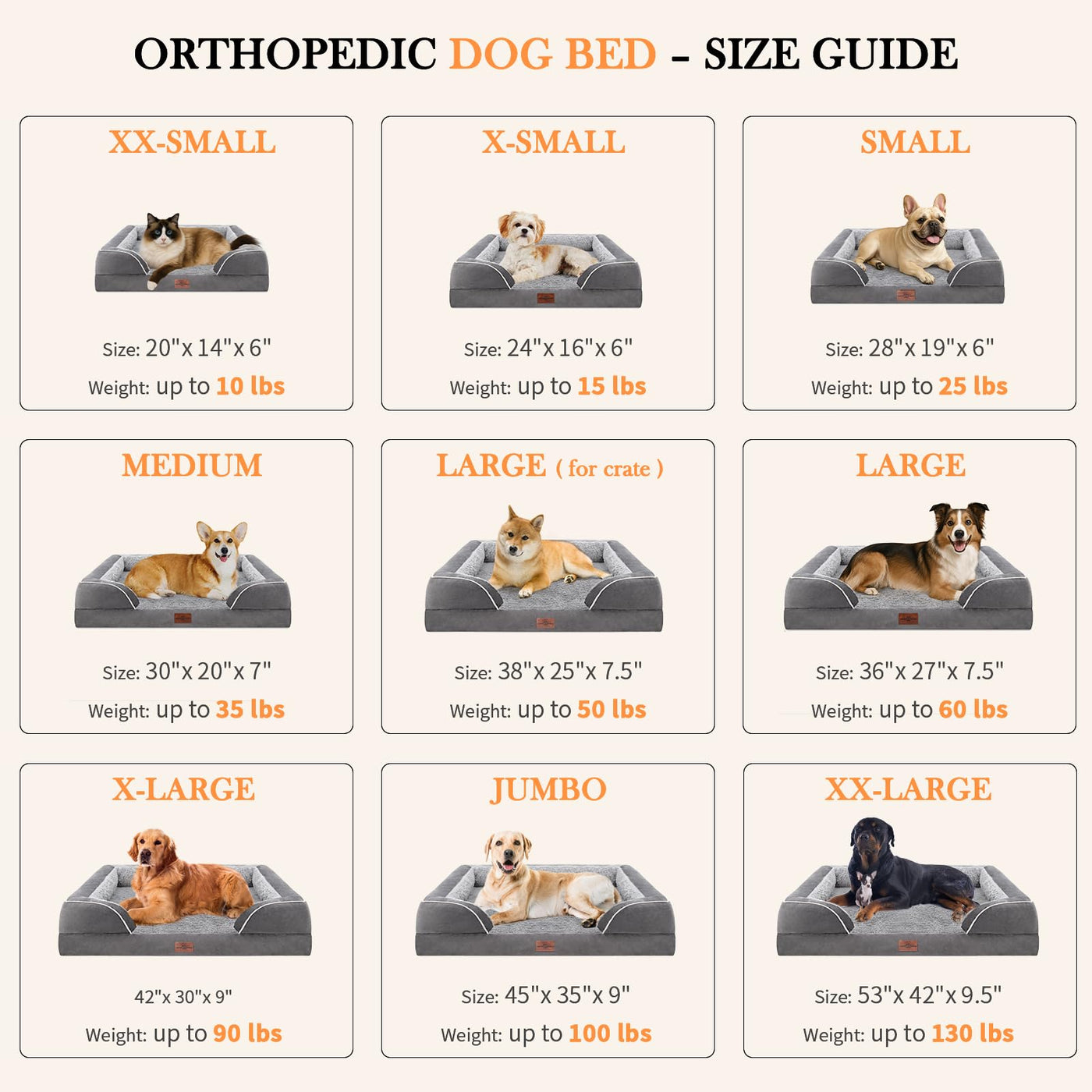 Comfort Expression Large Dog Beds Waterproof Orthopedic Foam Dog Sofa Beds Comfy Pet Bed With Washable Removable Cover & Non-Sli