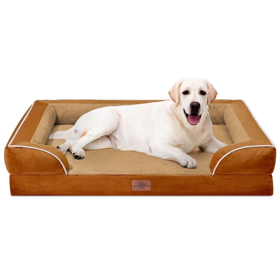 Comfort Expression Orthopedic Dog Bed for Extra Large Dogs PV Washable Dog Sofa Bed Jumbo Waterproof Dog Bed with Removable Cover & Non-Slip Bottom(Jumbo Caramel)