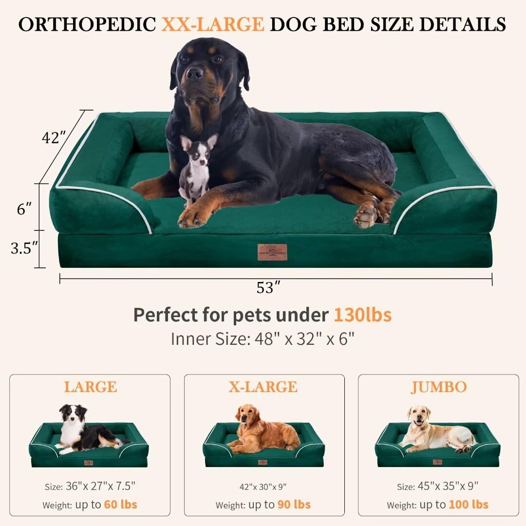 Comfort Expression Orthopedic Dog Bed Waterproof, Xxl Dog Beds For Oversized Dogs, Washable Dog Sofa Bed With Removable Cover & Non-Slip Bottom(Xx-Large,Emerald)