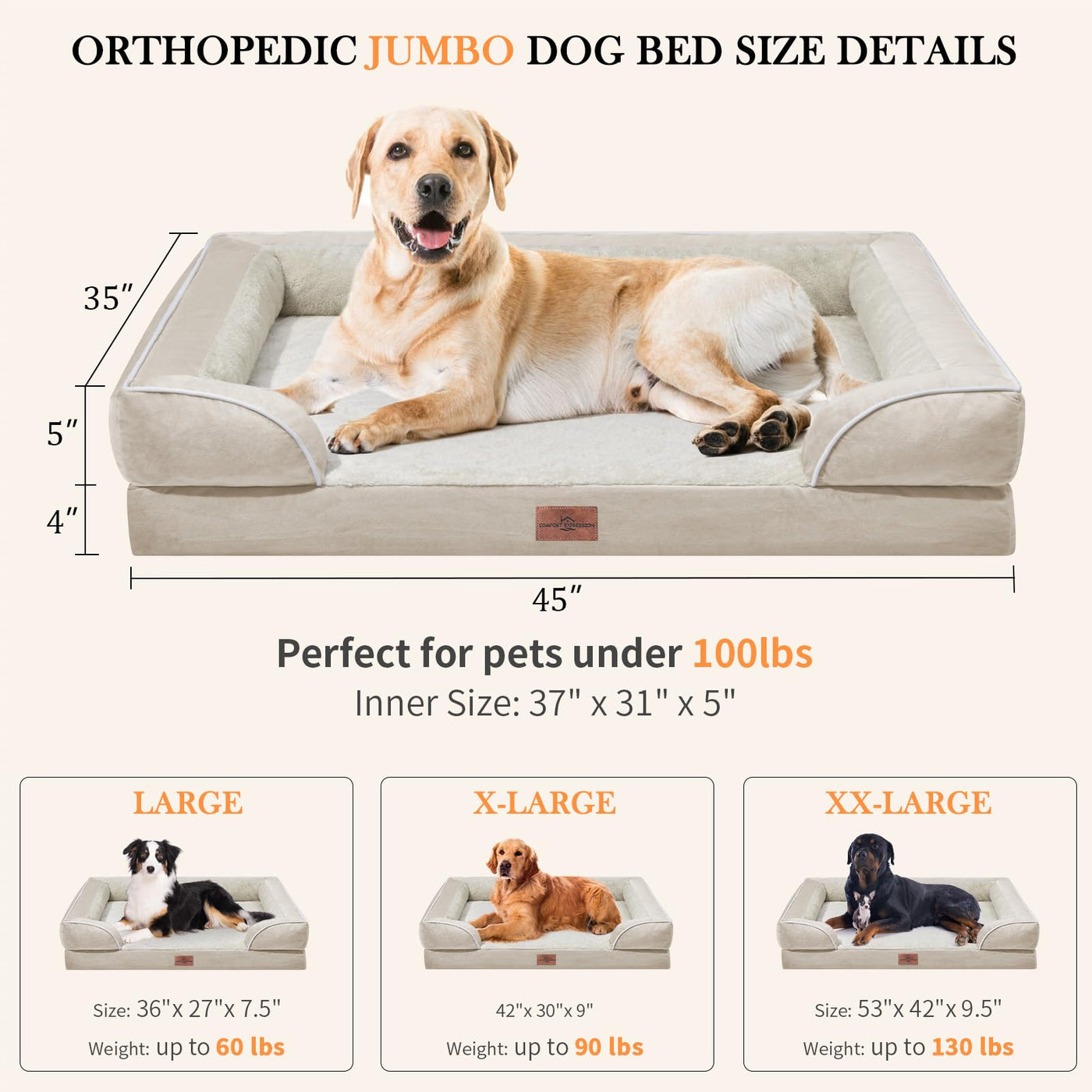 Comfort Expression Orthopedic Jumbo Dog Bed, Extra Large Dog Beds Jumbo Breed, Waterproof Dog Bed, Pv Washable Dog Sofa Bed With