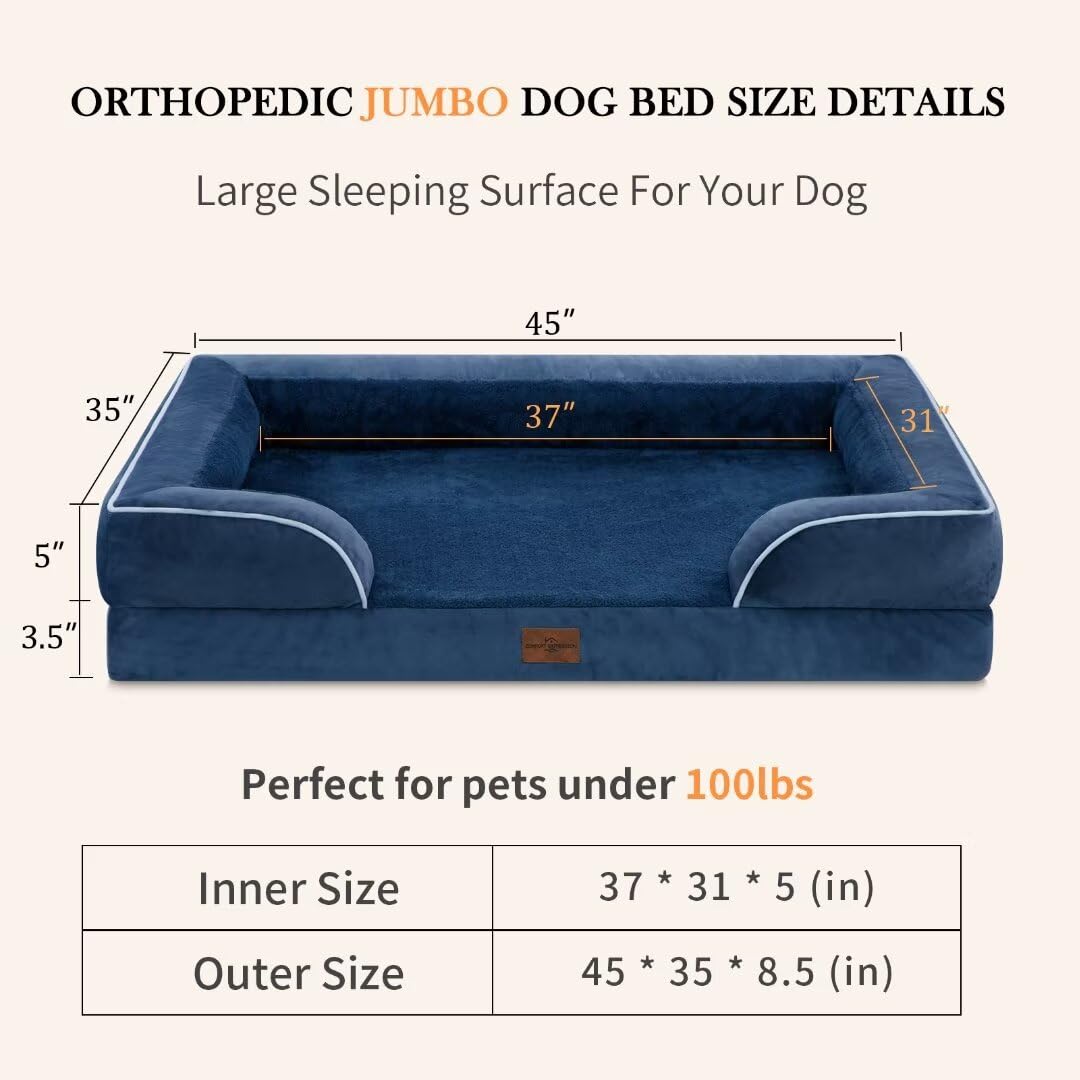 Comfort Expression Pv Washable Jumbo Dog Bed For Extra Large Dogs, Waterproof Orthopedic Dog Bed, Jumbo Breed Dog Bed Sofa With Removable Cover & Non-Slip Bottom(Jumbo,Navy Blue)
