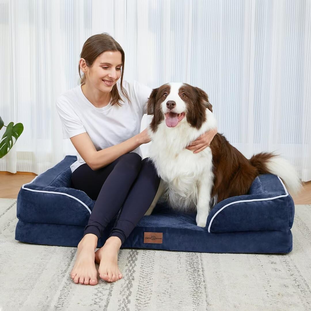 Comfort Expression PV Washable Jumbo Dog Bed for Extra Large Dogs Waterproof Orthopedic Dog Bed Jumbo Breed Dog Bed Sofa with Removable Cover & Non-Slip Bottom(Jumbo Navy Blue)