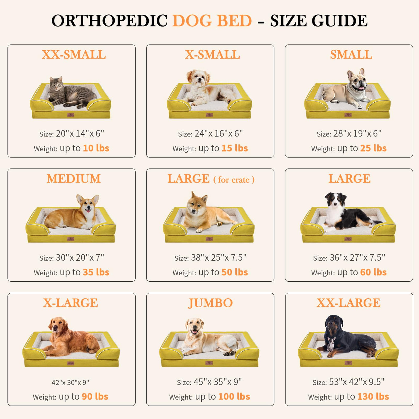 Comfort Expression Small Dog Beds Waterproof Orthopedic Foam Dog Sofa Beds For Medium Small Dogs Comfy Pet Bed With Washable Removable Cover & Non-Slip Bottom(Small,Spicy Mustard)