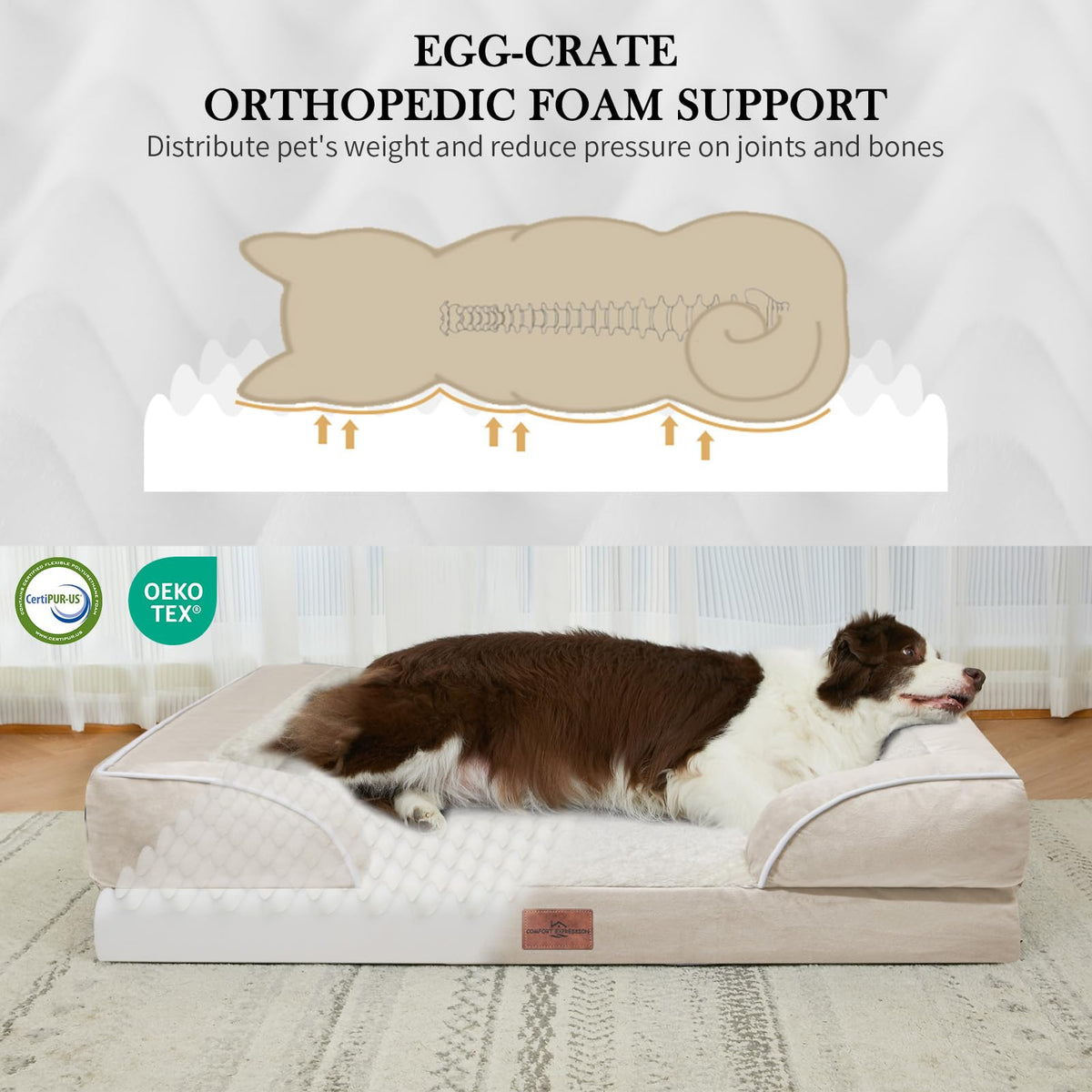 Comfort Expression Waterproof Large Dog Beds Orthopedic Foam Dog Beds For Large Dogs Sofa Comfy Pet Bed With Washable Removable Cover & Non-Slip Bottom(Large,Dark Grey)