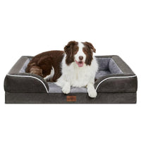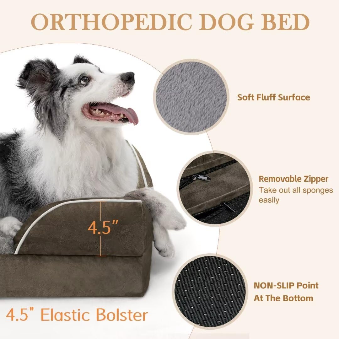28D Egg cREAT FOAM:4 inch high 28D egg sponge large size dog bed the sponge is soft and elastic can evenly support the dogs joints and muscles especially suitable for elderly dogs with anxiety and dogs with arthritis SOFA DOg BED DESIgN: This pet bed large is wrapped with four handrails The fence-like design makes the dog feels more secure lying in itAnd 35 inch side pillow provide extra support for your pets neck and head can be relaxed and soothed so that the pets can rest better in the dog beds EASY TO cLEAN & MAINTAIN:ouble-layer zipper design: Zip the zipper of the armrest and the bottom zipper to easily take out all sponges You just need to clean the dog bed cover to keep the elasticity and use time of the sponge et bed large size Dog Bed Removable cover is machine washable just remove the dog bed cover and throw it into the washing machineo not immerse in water for long time suitable for low-temperature drying SOFT SURFAcE:The surface is made of high-quality plush which is comfortable to the touch and does not pill or fadeThe materials are gentle on skin noses and paws WATERPROOF LAYER:Dont worry about getting the memory foam dog bed wet the washable dog bed cover has a waterproof lining on the back to prevent liquid leakage and protect the foam Removable cover with zipper support machine washing and low-temperature drying SIZE REcOMMENDATION: Sleep area of large dog bed is 22 A 22 inches The classic bolstered xlarge dog bed provids high-loft orthopedic cushion support as well as a super cozy nestling and burrowing space for dogs and catsThis dog bed large size dog suitable for dogs weighing under 50 pounds If your pets weight and lying length just fit one size or between two sizes it is recommended to choose a larger size for the comfort of the dog