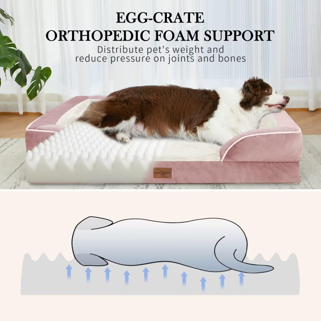 Comfort Expression Waterproof Orthopedic Foam Dog Beds XL Dog Bed Extra Large Dogs with Bolster Washable Dog Bed Sofa Pet Bed with Removable Cover & Non-Slip Bottom(X-large Pink)
