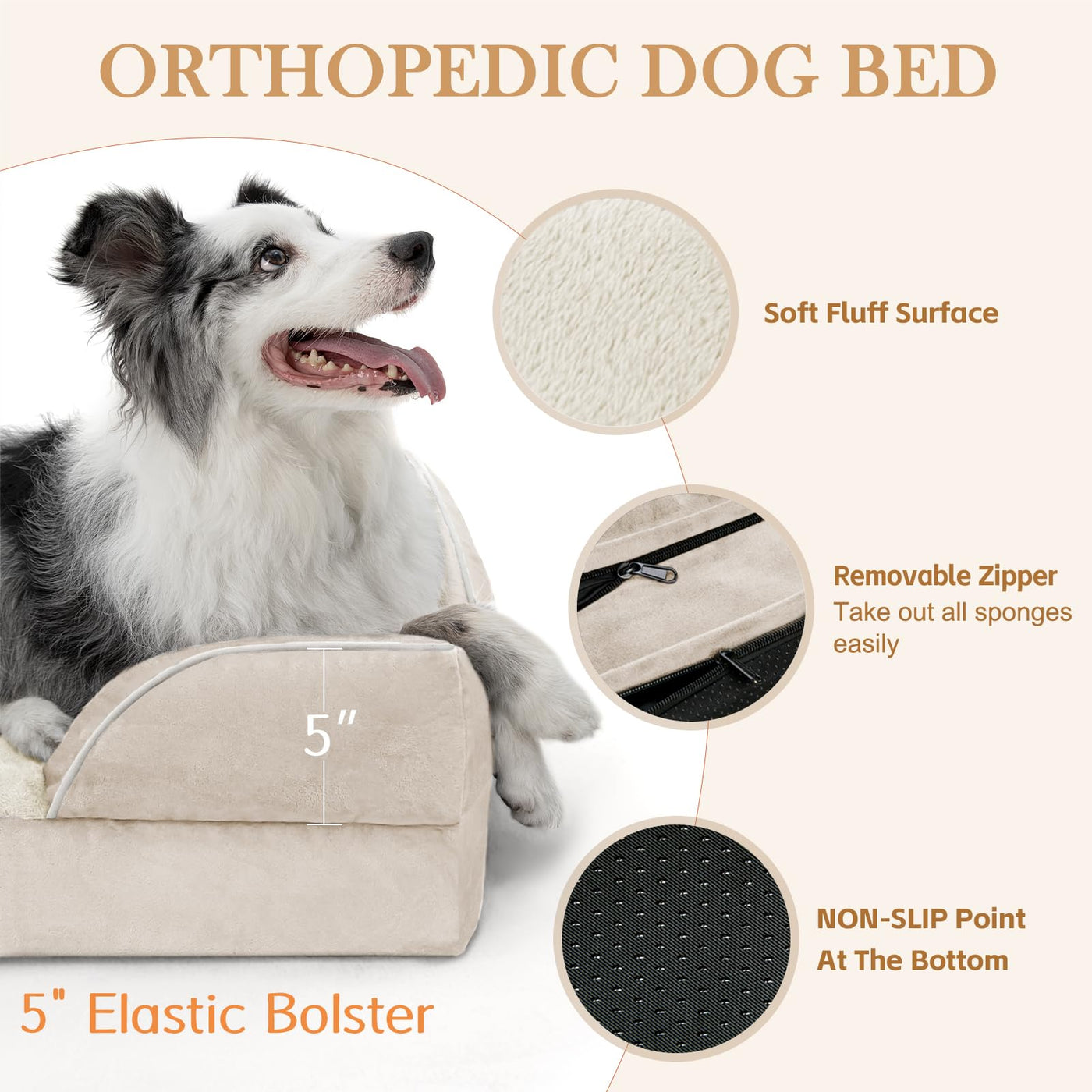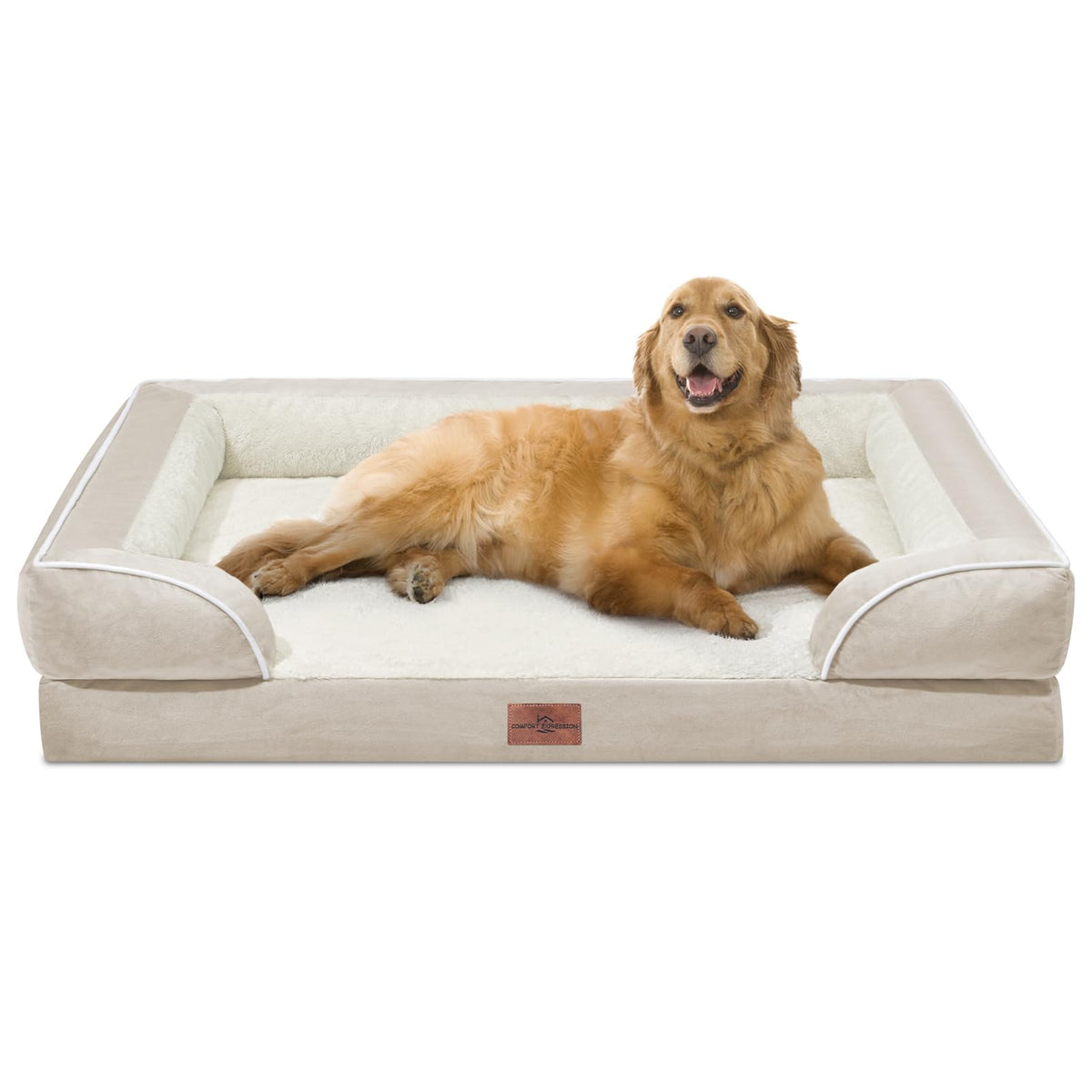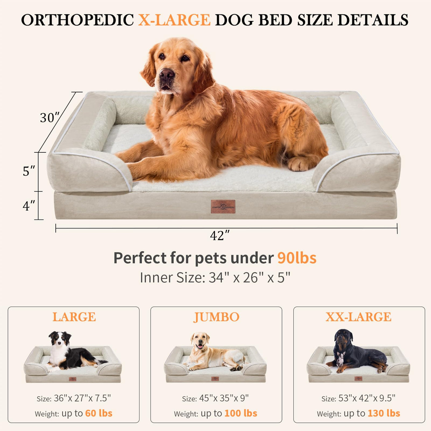 Comfort Expression XL Dog Beds for Extra Large Dogs Waterproof Orthopedic Dog Bed with Bolster Washable Dog Bed Sofa with Removable Cover & Non-Slip Bottom(X-large Beige)