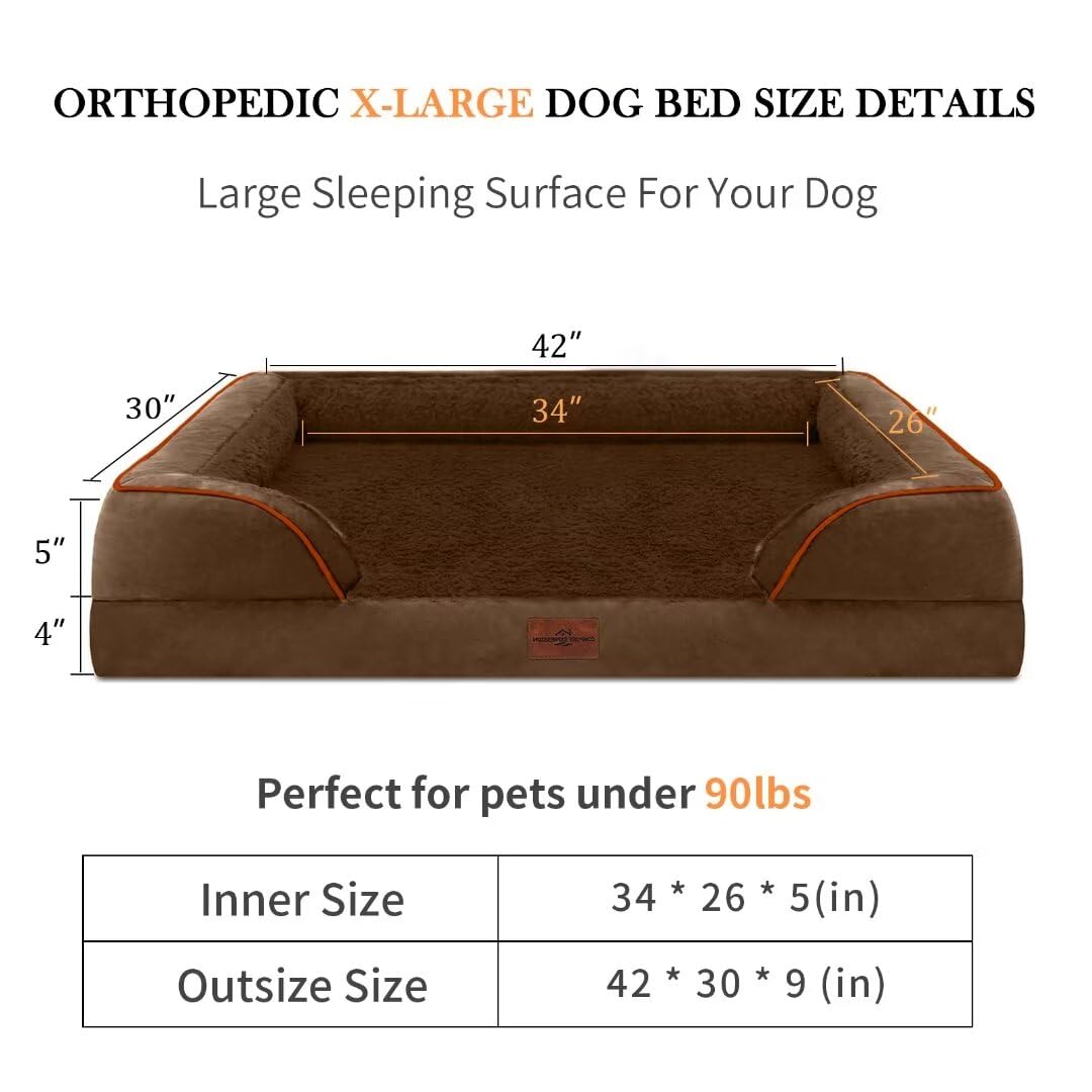 Comfort Expression XL Orthopedic Dog Beds for Extra Large Dogs Waterproof Dog Bed with Bolster Washable Dog Bed Sofa Pet Bed with Removable Cover & Non-Slip Bottom(X-large Chocolate Brown)
