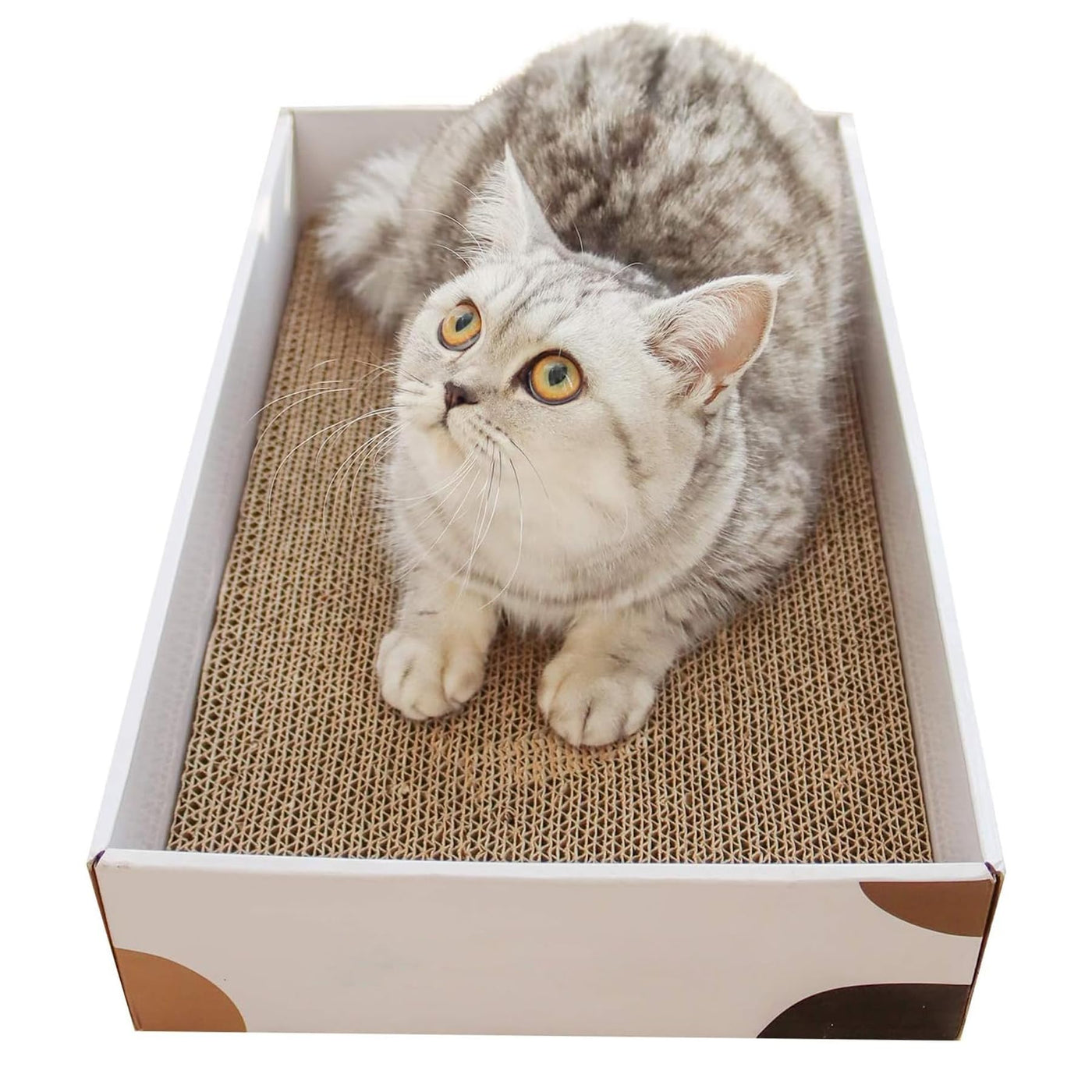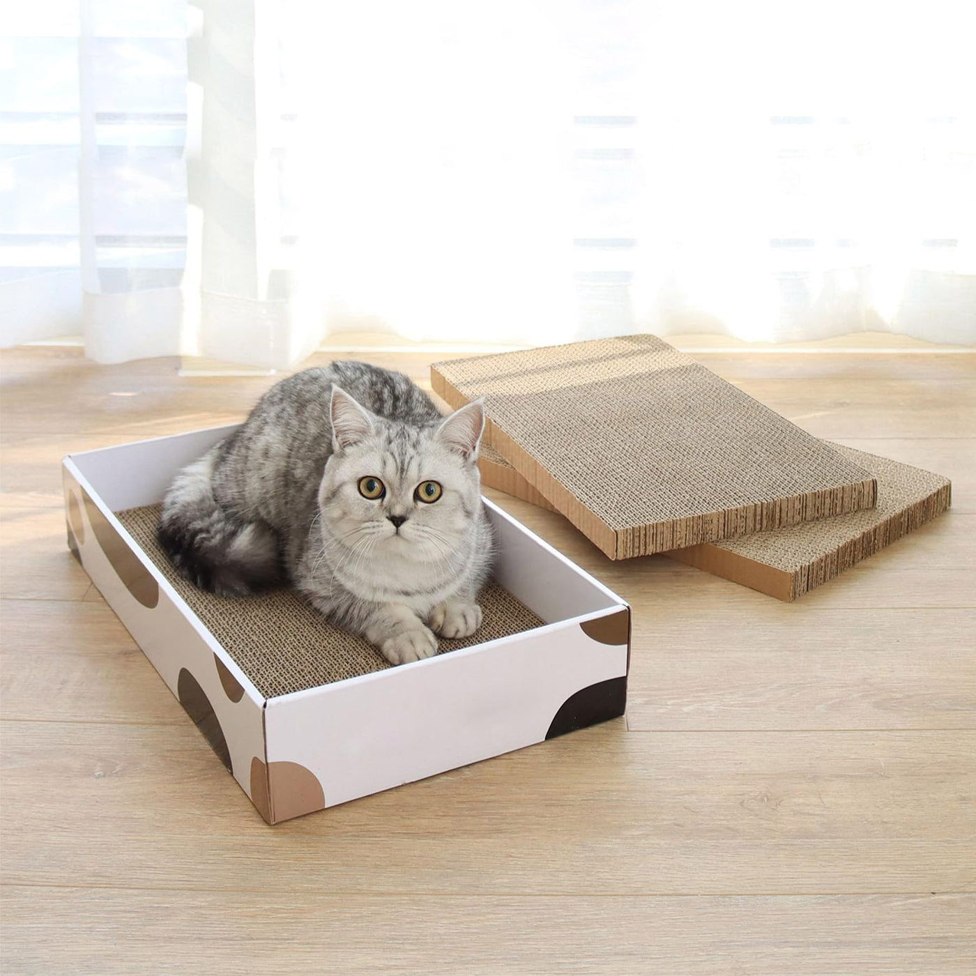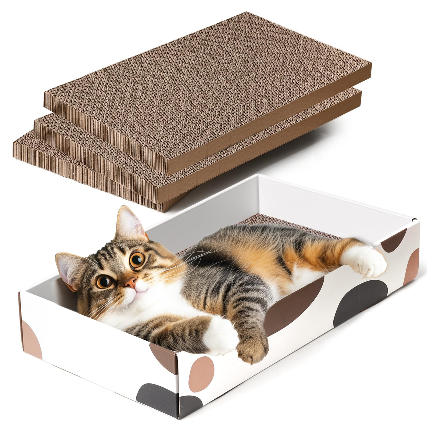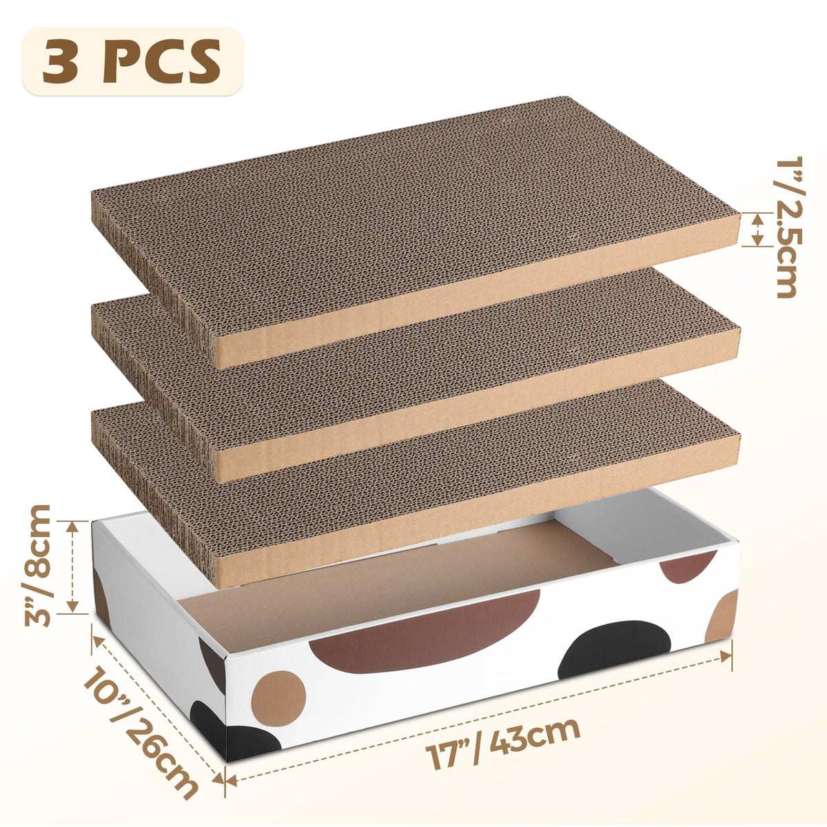 Comsaf Cat Scratcher Carboard Refill Box With 3 Pieces 17'X10' Board, Kitty Cat Scratching Pad Recycle Corrugate Scratcher Cat Scratch Lounge Long Lasting Reversable