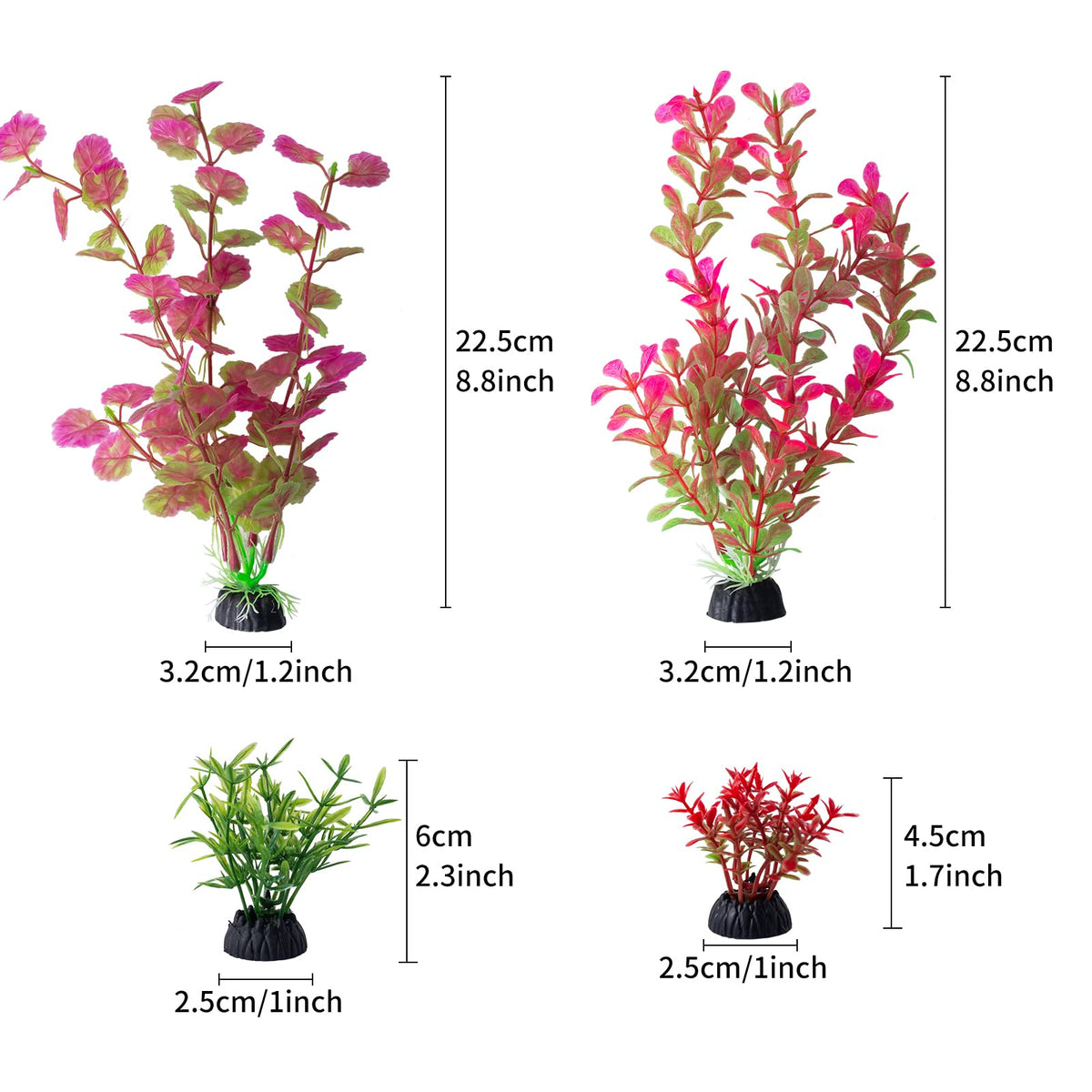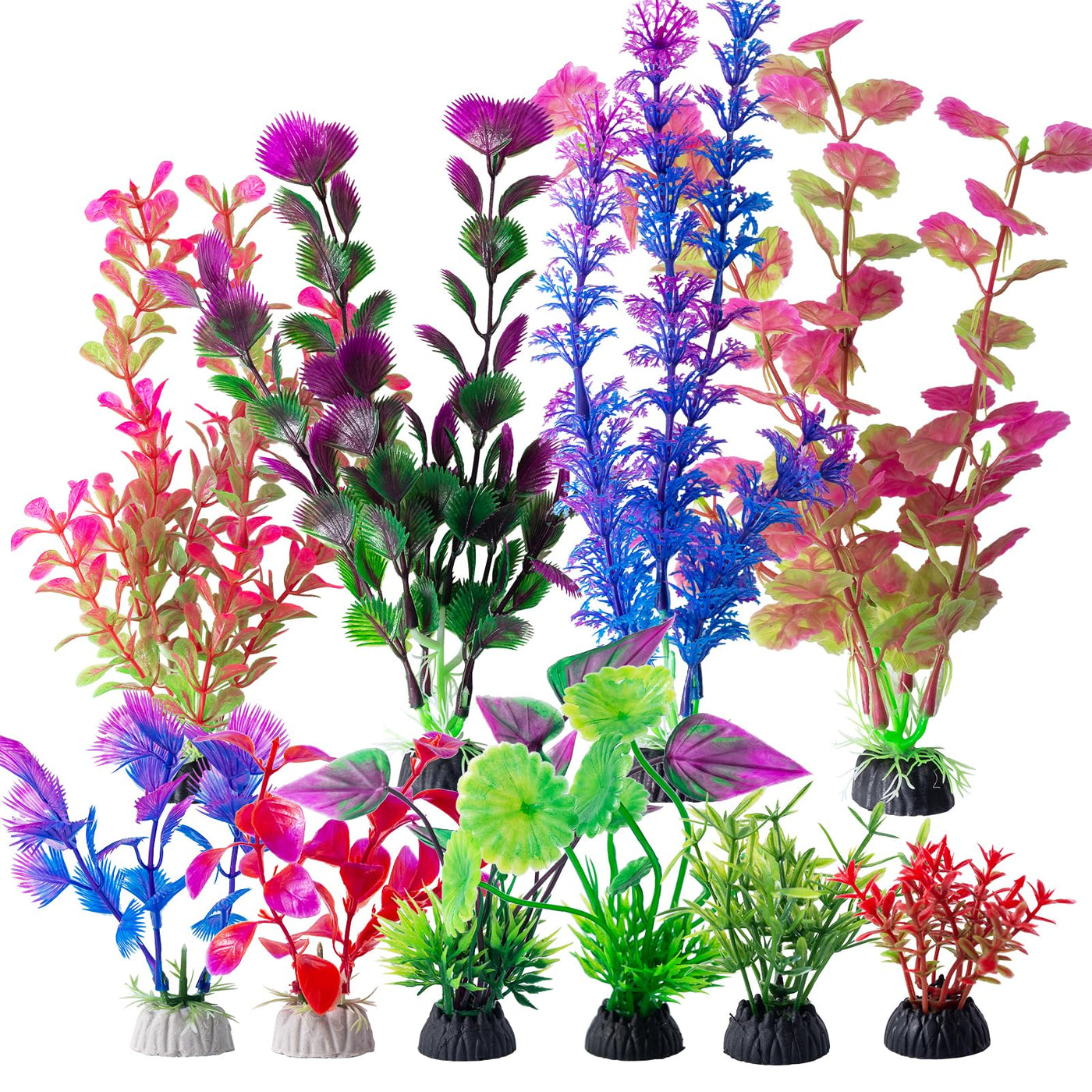Live or Artificial ?There is no right or wrong answer, which plants you choose are a matter of tasteBut have you ever- Tired of taking on the role of live plants gardener as well as fish caretaker?- Tired of strong lighting for aquarium live plants?- Tired of leaves detach and become jammed in the filter inlet and clog up entire filter system?Artificial plants will be a good choice for you!Express Your PersonalityTry placing decorations in different locations after each time you clean. Your fish will enjoy exploring the new setup and you can enjoy creating new nooks and crannies for them to discover. The possibilities are endless and youll never have to have the same setup twice!Easy To InstallRinse and soak the plant in warm water for 15-30 minutes, to relax the fabric and give them an even more realistic look. Place it into the aquarium, sinking the ceramic base into the gravelEasy To DecorateTo create visual depth in the aquarium, place taller plants in the back of the tank and shorter plants in the front. Mix styles and colors of plants to create an aquarium unlike any otherEasy To CleanTransfer plants from aquarium to a clean container, rinse in clean water, dry overnight, clean with a soft brush, make them look as good as new again. Never use soap when cleaningMaterial: Plastic and ceramicLength: 4 inch(Sizes are approximate)Package Contents:10 Pack Comsun Artificial Plants
