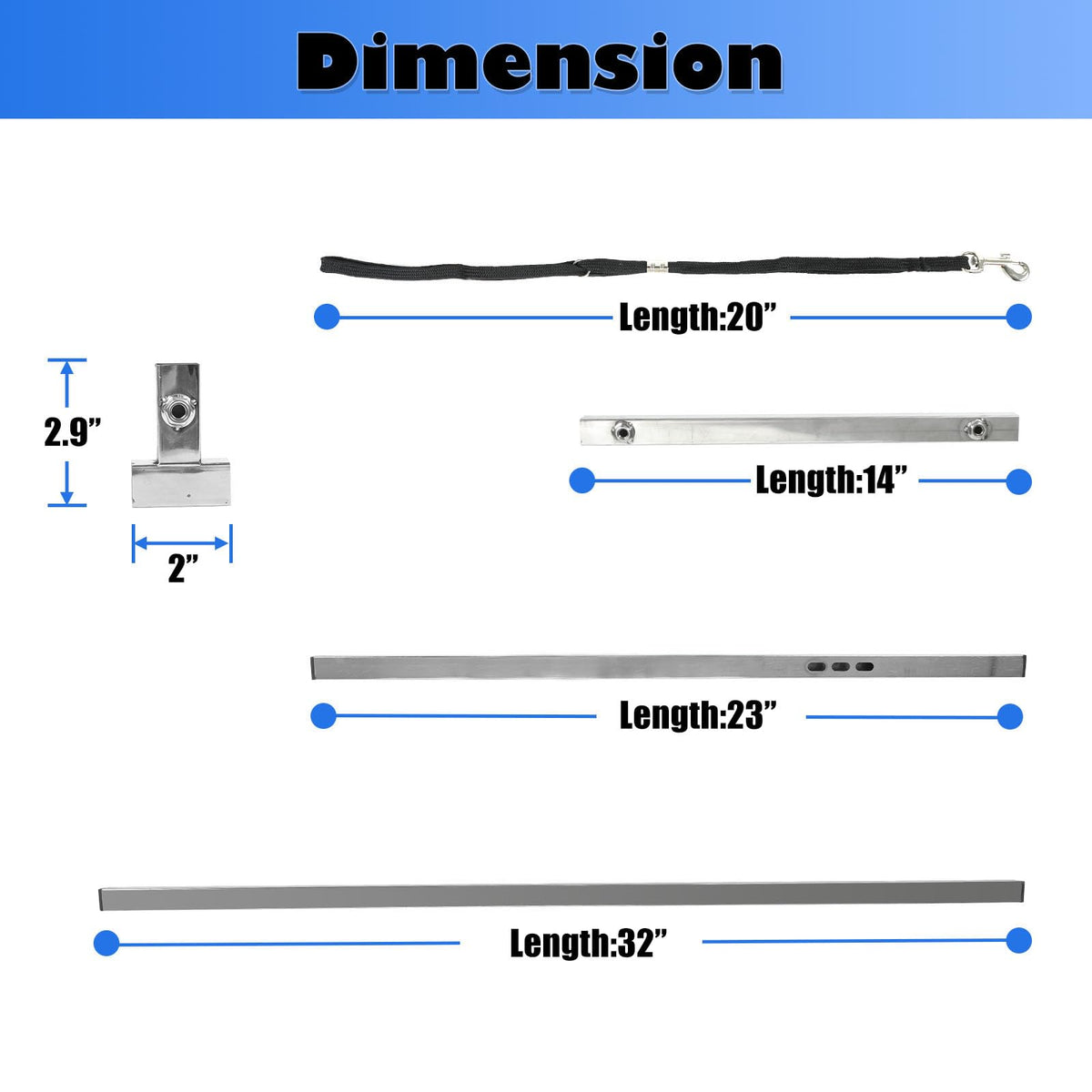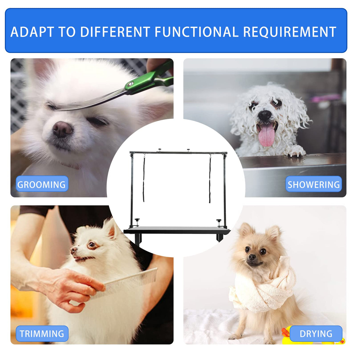 Adjustable Grooming Arm The grooming arm height can be easily adjusted by the clamp to meet your needs.It will raise the height of your pet so that you can reach him easily for bathing, trimming, drying, grooming or other things you want to do! Easy Assembly Easy and quick assembly. If there is any part missing or damaged during shipping, please contact us, we will help you to solve the problem ASAP. Features 1.Rust-resistant stainless steel. 2.Comes with a clamp-on Adjustable Grooming Arm and security nylon Loop. 3.Collapsible and Easy to Assemble for convenient use and storage. Specifications Material: Stainless Steel Package Size: 32.3*5.3*3.6 inches Products Gross Weight: 6.6 lbs