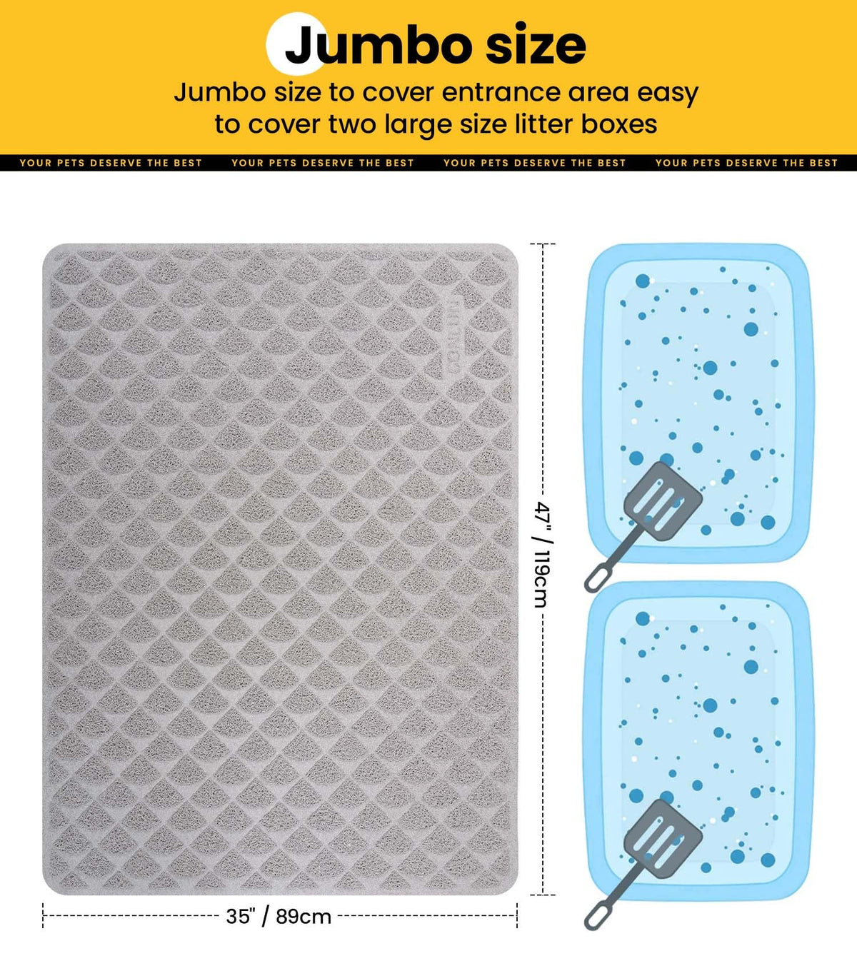 Conlun Cat Litter Mat Litter Trapping Mat, 47 X 35 Premium Durable Pvc Cat Litter Box Mat With Scatter Control, Non-Slip,