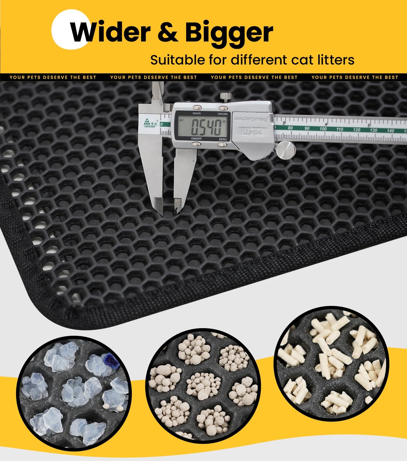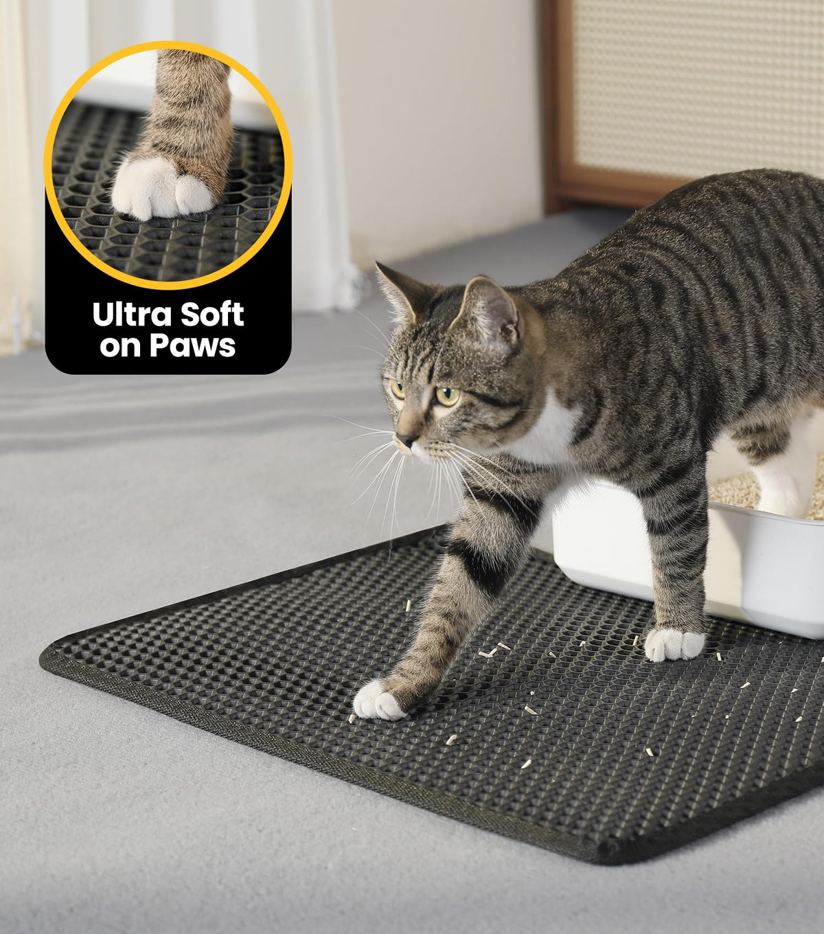 Conlun Cat Litterbox Mat&Nbsp;- Ultimate Solution For Litter Tracking And Easy Cleanup The Best Way To Keep Your Floors Spotless And Reduce Litter Mess Around Your Home! Key Features: Conlun Litter Catcher Mat&Nbsp;Is Engineered With A Double-Layer Design That Traps And Collects Loose Litter Efficiently. The Top Layer Features Large Honeycomb Holes To Catch Scattered Litter From The Box And Cat Paws, While The Leakproof Bottom Layer Stores It, Allowing For Easy Reuse And Waste Reduction. This Durable, Easy&Nbsp;To&Nbsp;Clean Cat Litter Rug&Nbsp;Is A Practical, Hassle-Free Solution For Cat Owners. Effective Litter Collection: Featuring A Dual-Layer Structure, This Cat Litter Mats For Indoor Cats&Nbsp;Captures Litter Both From The Box And Your Cats Paws. The Large Honeycomb Holes In The Top Layer Effectively Trap Various Types Of Litter, Such As Clay, Tofu, And Crystal, While The Bottom Layer Collects The Litter, Minimizing Waste And Keeping Floors Clean. Waterproof &Amp; Urine-Proof: The Waterproof Bottom Layer Ensures Liquids Like Urine Stay Contained, Preventing Damage To Floors, Carpets, And Furniture. It Helps Maintain A Hygienic Environment By Protecting Your Home From Stubborn Stains And Odors. The Non-Slip Backing Keeps The Kitty Litter Mat Trapper&Nbsp;Firmly In Place During Use, Providing Added Stability And Convenience. Soft On Cat Paws, Durable Design: Crafted From Premium Eva Material, The Cat Litter Rug Catcher&Nbsp;Is Soft And Gentle On Sensitive Cat Paws, Ensuring Comfort. The Thick Woven Edges Are Designed To Withstand Chewing, Adding Durability And Longevity. This Ensures The&Nbsp;Cat Pads For Litter Box&Nbsp;Remains Intact While Offering A Pleasant Environment For Your Cat. Easy To Clean &Amp; Maintain: Cleaning The&Nbsp;Litter Box Pads&Nbsp;Is Effortless. Simply Tilt The Mat To Dump Out Trapped Litter Or Vacuum It For A Quick Clean-Up. For More Stubborn Debris, Rinse The Mat With Water Or Wipe It Down With A Damp Cloth. For Heavier Stains, Use Soap To Keep It Fresh, Ensuring A Long-Lasting, Low-Maintenance Solution. Compact &Amp; Travel-Friendly: Measuring 24 X 15 , This Cat Litter Matt&Nbsp;Is Designed For Small Litter Boxes And Compact Spaces. It Can Be Rolled Up Or Folded For Easy Storage, Whether At Home Or On The Go. If The Cat Litter Pad&Nbsp;Has Creases, Simply Flatten It For 24 Hours, Or Roll It In The Opposite Direction To Smooth Out Folds. Perfect For Travel Or Compact Spaces! Size And Color&Nbsp;Options: Size: 23.6 X14.6 , 23 X17 , 30 X24 Color: Black, Gray &Nbsp; How To Deal With The Crease? 1.&Nbsp;Unfold The Mat. 2.&Nbsp;Use A Dryer To Hot Blow The Crease, Make It Softer And Easier To Disappear. 3.&Nbsp;Fold The Cat Litter Catcher Mat&Nbsp;In Reverse Along The Crease And Flatten It Firmly. 4.&Nbsp;Unfold The Litter Robot Mat, Put Some Heavy Stuff On The Cat Matt For Litter Box&Nbsp;For At Least 24 Hours. 5.&Nbsp;A Flat Mat For Litter Box&Nbsp;That You Finally Get. If Still Can Not Succeed, Please Feel Free To Contact Us. Customer Satisfaction Guarantee: We Are Committed To Your Satisfaction. If You Have Any Questions Or Concerns About The Conlun Cat Rug For Litter Box, Our Friendly Customer Support Team Is Here To Help. Were Dedicated To Providing A Clean And Comfortable Environment For Both You And Your Cat.