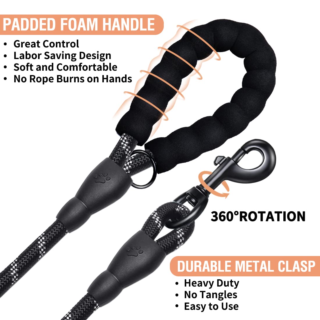 Cooyoo 2 Pack Dog Leash 6 Ft Heavy Duty - Comfortable Padded Handle - Reflective Dog Leash For Medium Large Dogs With Collapsibl