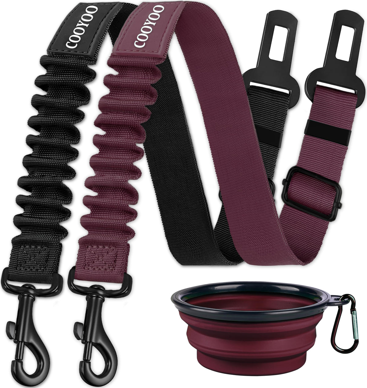 Cooyoo Dog Seat Belt,3 Piece Set Retractable Dog Car Adjustable Seatbelts For Vehicle Nylon Pet Safety Heavy Duty & Elastic & Du
