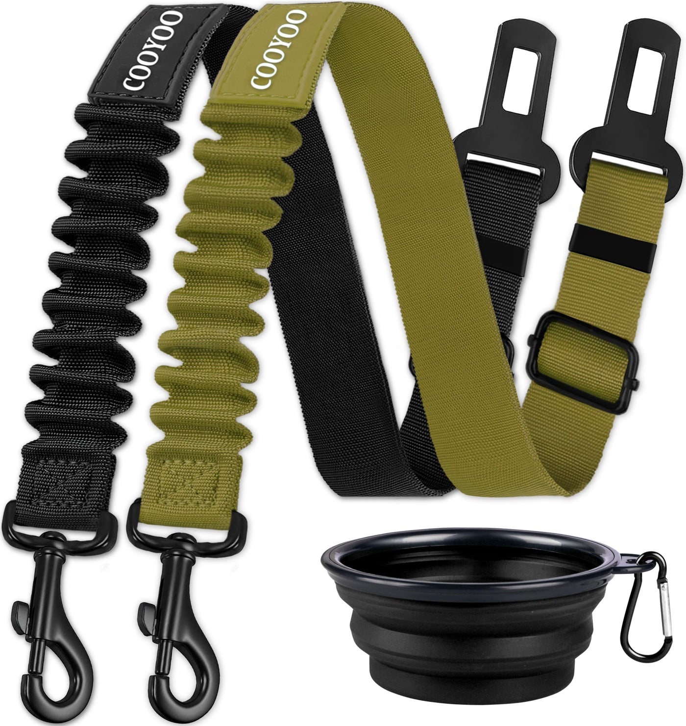 cOOYOO Dog Seat Belt 3 Piece Set Retractable Dog car Seatbelts Adjustable Pet Seat Belt for Vehicle Nylon Pet Safety Seat Belts Heavy Duty & Elastic & Durable car Harness for Dogs