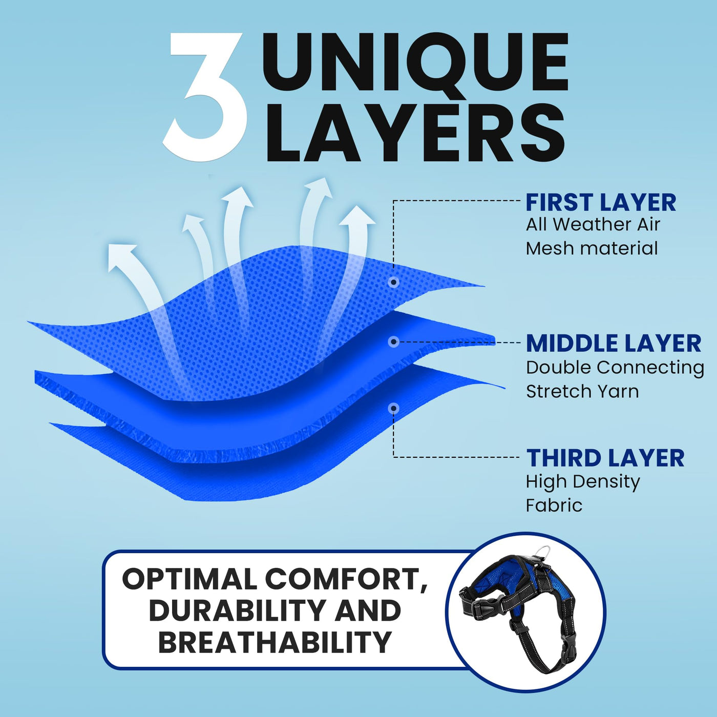 Q: How does the reflective feature enhance my dog's safety during walks?A: The reflective design of the Copatchy harness helps increase visibility during early morning or late evening walks, ensuring your dog is seen by motorists and pedestrians, thereby enhancing safety.