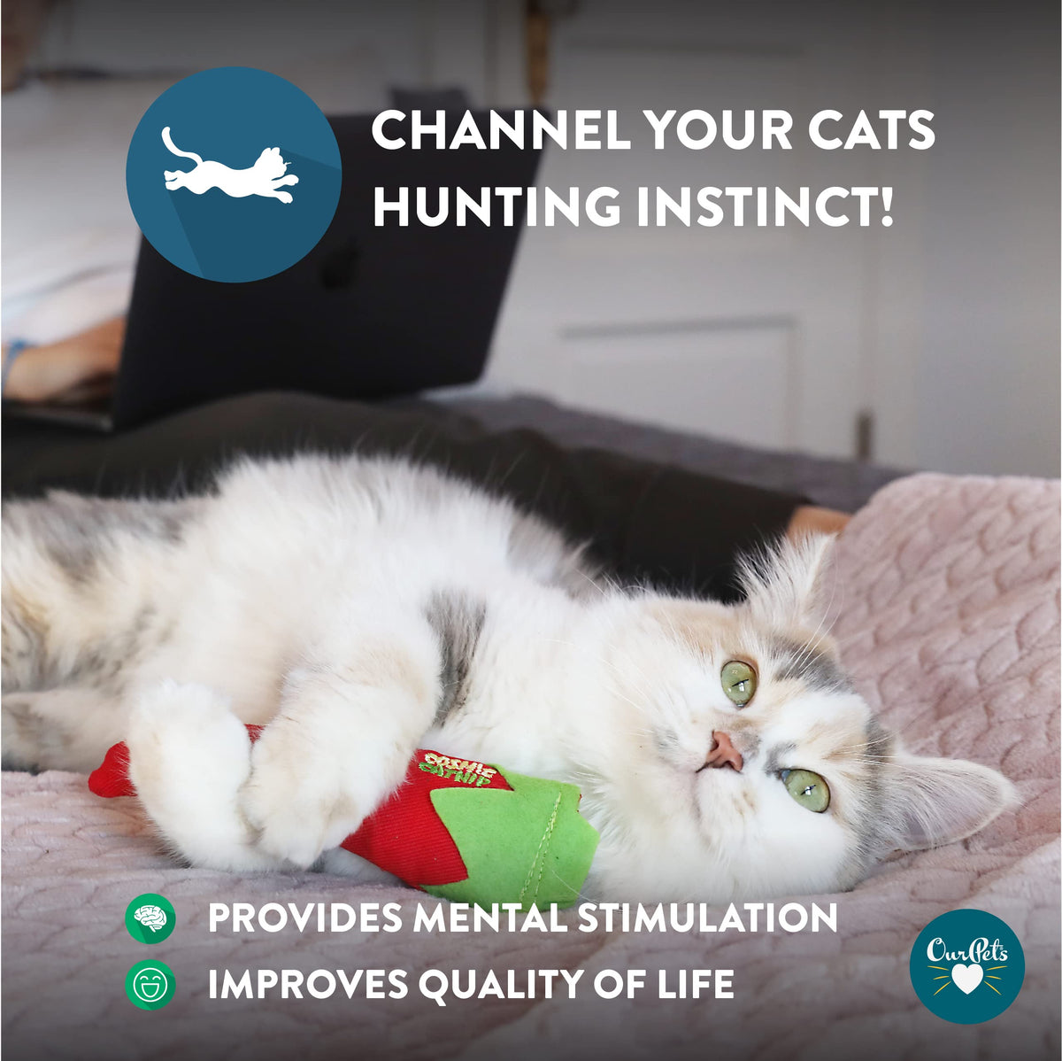 OurPets Cosmic Catnip has been grown to achieve the strongest, most aromatic catnip ever produced! When catnip is pinched, the aroma stored in the dried leaves is released, driving cats wild! Catnip is a 100% natural herb that stimulates a harmless, playful reaction in most cats. The action of a cat playing with this catnip-stuffed toy will release an energizing aroma for long-lasting play.