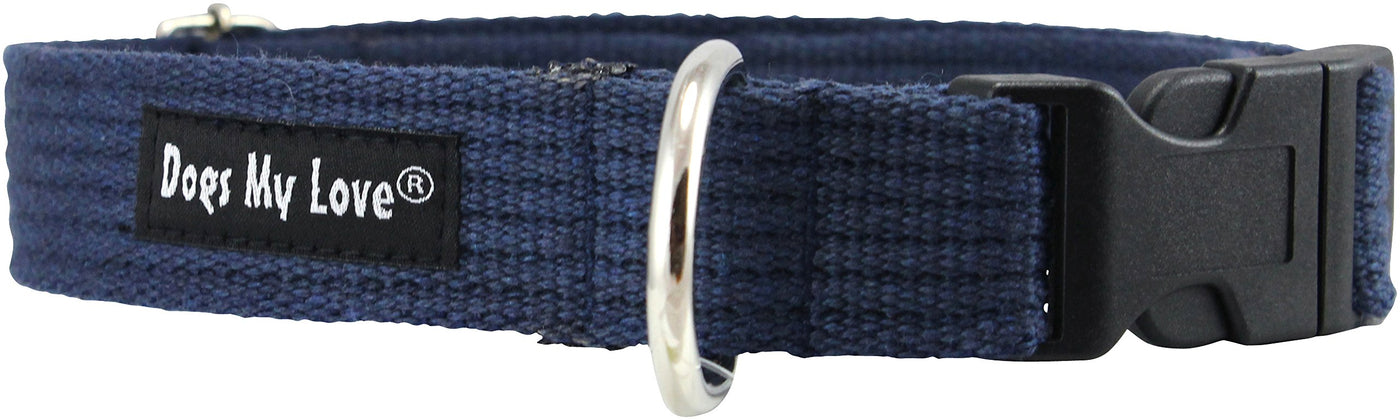 Made of strong and durable, 100% natural, ecological cotton tape. Comfortable for wearing and lighter weight adjustable soft dog collar. Features quick release buckle. Strong and durable. Ideal collar for everyday use. These fabulous earth friendly dog collars available in four sizes with four different widths for the perfect fit. Please check other Dogs My Love products for matching leashes and harnesses