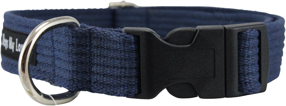 Cotton Web Adjustable Dog Collar 4 Sizes Blue (Large: Neck 16'-23'; Width 1')