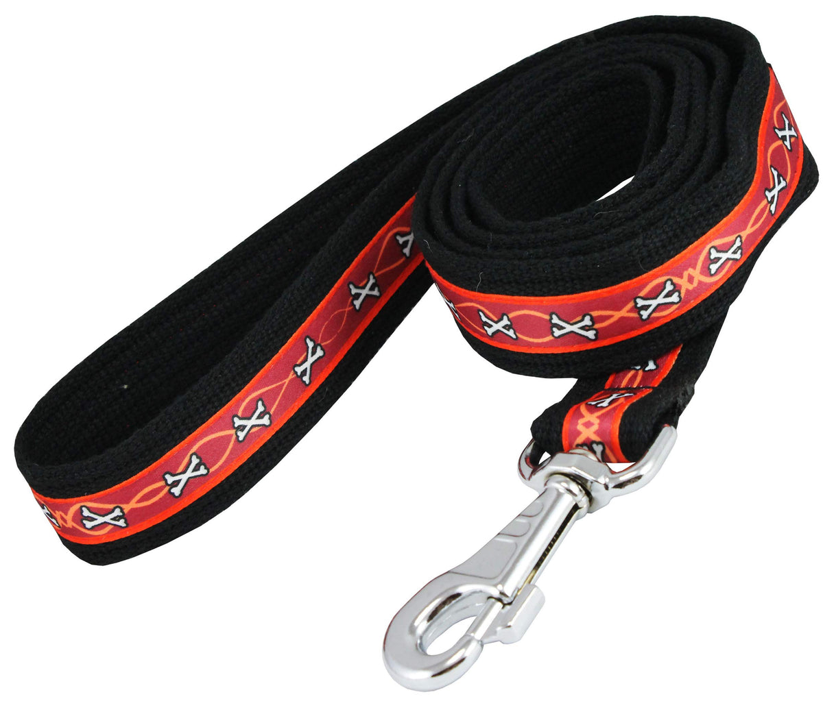 Cotton Web Dog Leash 4.5Ft Long 1' Wide For Walks And Training, Burgundy Bones Pattern