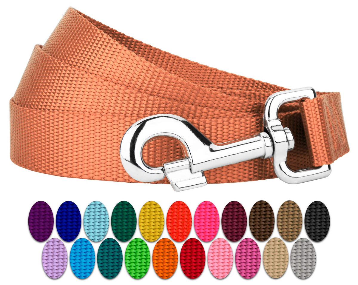 Lead The Pack With One Of Country Brook Petz Nylon Leashes. Ideal For Everyday Use, These Have A Width Of 1 Inch And A Length Of 2, 4, Or 6 Foot, Giving You The Span To Let Doggo Feel A Little Bit Of Freedom. This Classic Leash Pairs Well With Most All Collars, Including Training Collars Such As Martingales. Our Nylon Is Four Times Stronger Than Polypro And Will Outlast Them By Many Years. The Silky Smooth Nylon Loop Slips Over Your Hand, Giving You Comfortable Grip While Walking Your Pet. Box Stitching Ensures Strength For When Your Pup Pulls Against Their Leash. These Leashes Are Washable, With Mild Detergent, And Dry When Laid Out. We Know That You Want The Best For Your Pets, Thats Why We Make All Of Our Products Here In The United States. Constructed With High Grade Snap Hooks And Nylon That Reaches A Tensile Strength Of 4,200 Pounds, It Ensures Your Puppy Wont Break The Leash. Walk Your Pup With Confidence Knowing That Country Brook Petz Has You In Mind When Creating Our Products. Style Isnt All We Have Going For Our Leashes. Does This Ad Not Have The Color Or Size That Youre Wanting? Check Out Some More Options From Country Brook Petz. We Offer Lengths Of 6, 4, And 2 Feet Long Along With Widths Of 1, 3/4, And 5/8 Inch. Available In Other Colors, Sizes, And Prints Located On A Different Ad. With All Of Our Options, Were Sure To Have The Right Choice For You No Matter If Your Pups Small, Medium, Or Large.