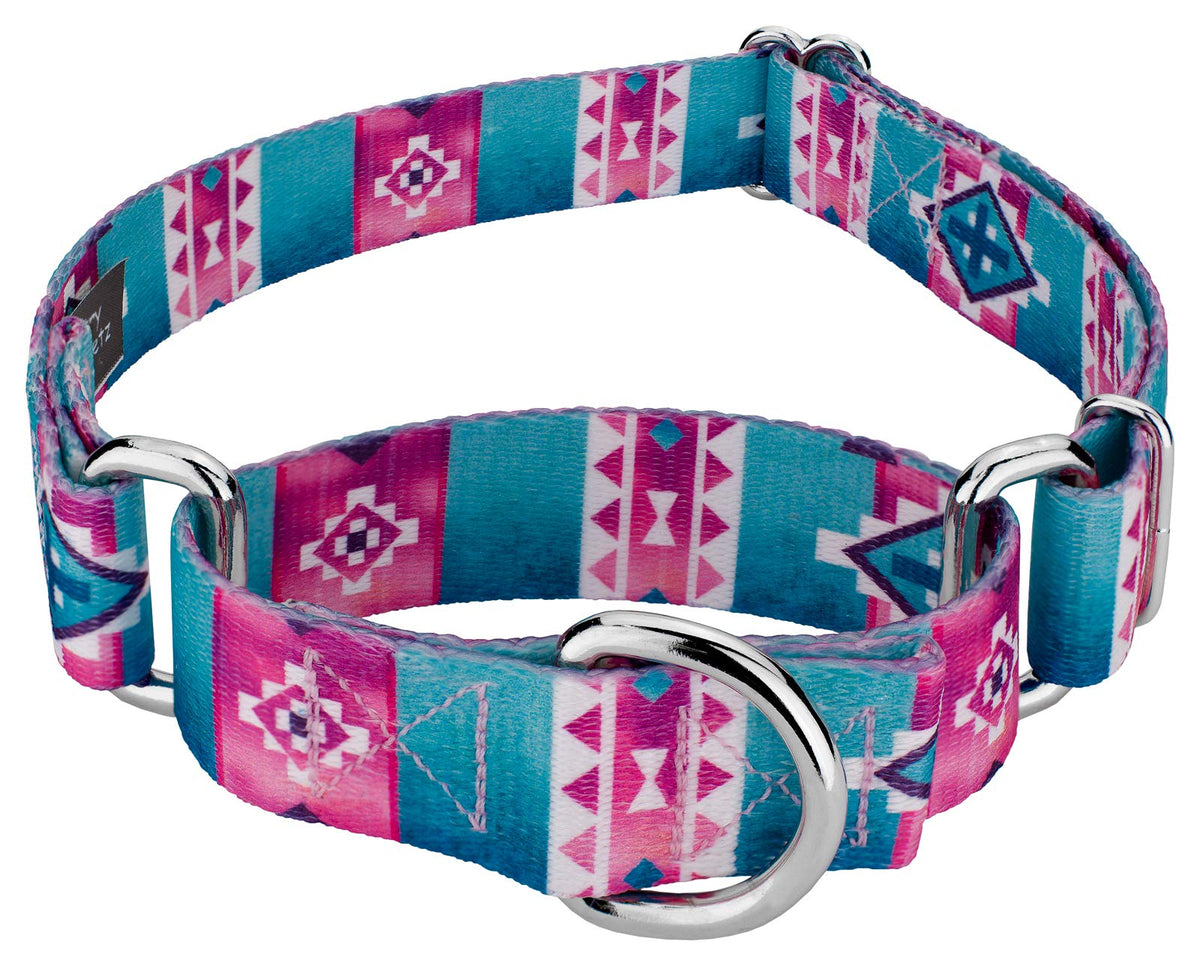 Is Your Escape Artist Slipping Out Of Their Collar? Martingale Collars Are Designed To Prevent Your Pup From Pulling Out Of Their Collar By Tightening Around Your Dogs Neck Whenever They Try To Remove Their Heads. Once Your Dog Quits Pulling, The Collar Relaxes Again. Perfect For Training, The Twin-Loop Design Gives You Control Over Your Stroll. The Martingale Collar Is Often Referred To As A Humane Choke Collar Because It Naturally Limits How Much It Tightens, Ensuring Your Dog'S Safety. A No-Slip, Adjustable, Limited Choke Collar Is An Excellent Solution For Sighthounds Who Slip Out Of Their Collars. Explore Our Albuquerque Design And Experience The Explosive Colors Of Our Geometric Print. Electric Blues Contrasting With Bright Pinks Create A Cohesive Composition That Will Be A Must Have. Gradient Colors Give The Webbing A More Dimensional Feel As The Shapes Work Together In A Flowing Pattern. This Classic Formation Will Be A Hot Item For All-Year-Round Use. Printed Using State-Of-The-Art Colorfast Inks, Our Collars Will Not Run Or Bleed. Crafted From Industry-Leading Hardware And Webbing, Country Brook Petz Albuquerque Martingale Dog Collars Stand Up Under Tough Conditions, All While Keeping Your Furry Friend Looking Fab. By Adjusting The Metal Slide, You Give Slack To The Loop. Slip It Over Your Dog'S Neck And Decrease Size Until You Can Comfortably Slip Only Two Fingers Under The Collar. The Unique Limited Closure Prevents The Choke From Becoming Too Tight. We At Country Brook Petz Pride Ourselves On Only Using The Best Hardware, And You Can Rest Assured That These Collars Will Withstand Whatever Your Pup Gets Into. Our Collars Have Wide-Mouthed Heavy-Duty Triglides For Easy Adjustment And Heavy-Welded D-Rings For Strength.