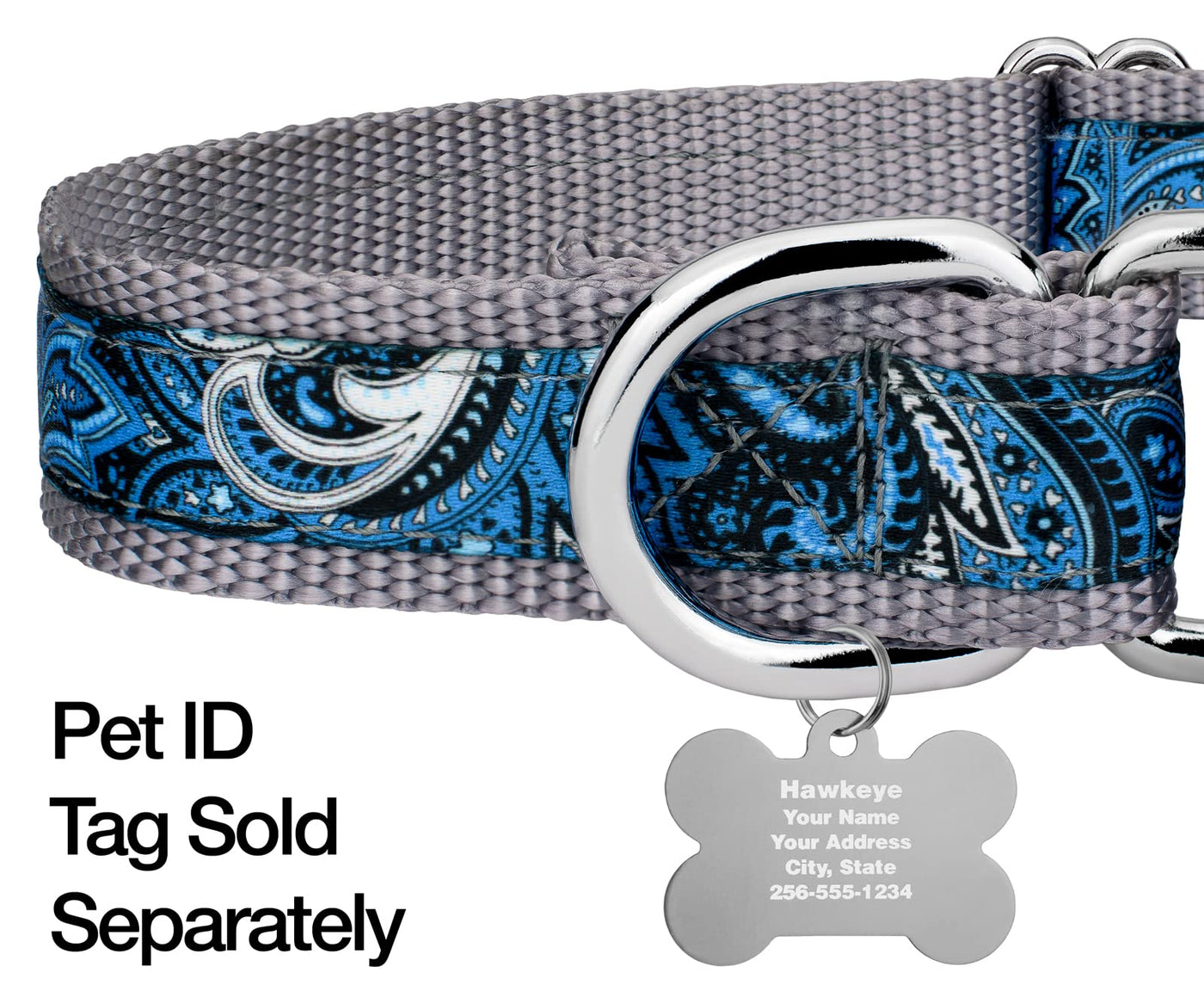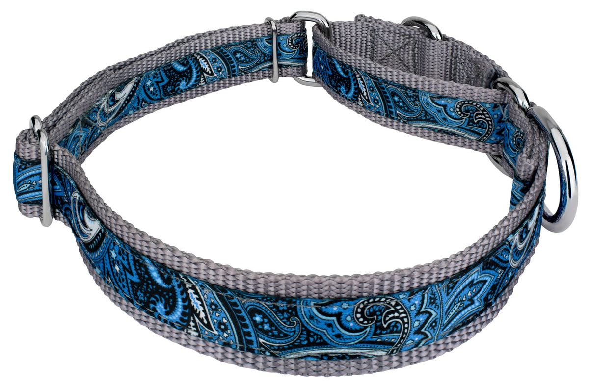 For Every Signature Collar You Purchase, One Will Be Donated To A Rescue Or Shelter. Country Brook Petz Blue Paisley Signature Martingale Dog Collar Is Here To Bring You The Traditional Print Of Paisley With Vivid Colors That Make Everything Pop. This Ornamental, Persian Inspired Design Features A Smooth Floral-Like Pattern, Flowing Lines, And Complimentary Colors That Will Contrast Against Your Applications; This Classic Composition Will Be A Hot Item For All-Year-Round Use. Our Signature Line Of Collars Are Handcrafted With Silky Ribbon Sewn Onto Durable Nylon. These Collars Sport A Soft To The Touch Feel All While Boasting A Photo-Realistic Print. Our Martingale Collars Are Designed To Prevent Your Pup From Pulling Out Of Their Collar By Tightening Around Your Dogs Neck Whenever They Try To Remove Their Heads. By Adjusting The Metal Slide, You Give Slack To The Loop. Slip It Over Your Dog'S Head And Decrease Size Until You Can Comfortably Slip Only Two Fingers Under The Collar. The Unique Limited Closure Prevents The Choke From Becoming Too Tight. Once Fido Quits Pulling, The Collar Relaxes Against Their Neck. Perfect For Training, The Twin Loop Design Gives You Control Over Your Stroll. The Martingale Collar Is Often Referred To As A Humane Choke Collar. A No-Slip, Adjustable-Choke Collar Is An Excellent Solution For Sighthounds Who Slip Out Of Their Collars. We At Country Brook Petz Pride Ourselves On Only Using The Best Hardware And You Can Rest Assured That These Collars Will Withstand Whatever Your Pup Brings Its Way. Our Collars Have Wide-Mouthed Heavy-Duty Triglides For Easy Adjustment And Heavy-Welded D-Rings For Strength. Designed To Make Your Dog Well Behaved On A Leash, This Training Collar Gives You Back Control.