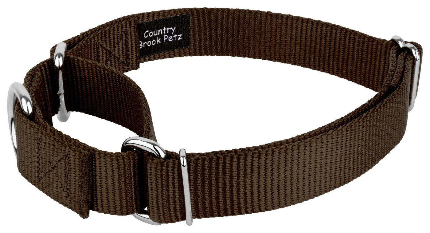 Country Brook Petz - Brown Martingale Heavy Duty Nylon Dog Collar - 21 Vibrant Color Options (3/8 Inch Width, Micro)
