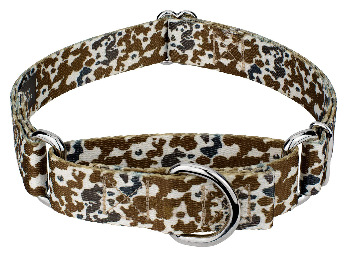 Is Your Escape Artist Slipping Out Of Their Collar? Martingale Collars Are Designed To Prevent Your Pup From Pulling Out Of Their Collar By Tightening Around Your Dogs Neck Whenever They Try To Remove Their Heads. Once Your Dog Quits Pulling, The Collar Relaxes Again. Perfect For Training, The Twin-Loop Design Gives You Control Over Your Stroll. The Martingale Collar Is Often Referred To As A Humane Choke Collar Because It Naturally Limits How Much It Tightens, Ensuring Your Dog'S Safety. A No-Slip, Adjustable, Limited Choke Collar Is An Excellent Solution For Sighthounds Who Slip Out Of Their Collars. Moooooove Over For Our New Cow Print Martingale Dog Collar. Featuring An Adorable Brown Spotted Cowhide Print, This Design Will Bring You Straight To The Farm! Printed Using State-Of-The-Art Colorfast Inks, Our Collars Will Not Run Or Bleed. Crafted From Industry-Leading Hardware And Webbing, Country Brook Petz Cow Print Martingale Dog Collars Stand Up Under Tough Conditions, All While Keeping Your Furry Friend Looking Fab. By Adjusting The Metal Slide, You Give Slack To The Loop. Slip It Over Your Dog'S Neck And Decrease Size Until You Can Comfortably Slip Only Two Fingers Under The Collar. The Unique Limited Closure Prevents The Choke From Becoming Too Tight. We At Country Brook Petz Pride Ourselves On Only Using The Best Hardware, And You Can Rest Assured That These Collars Will Withstand Whatever Your Pup Gets Into. Our Collars Have Wide-Mouthed Heavy-Duty Triglides For Easy Adjustment And Heavy-Welded D-Rings For Strength.