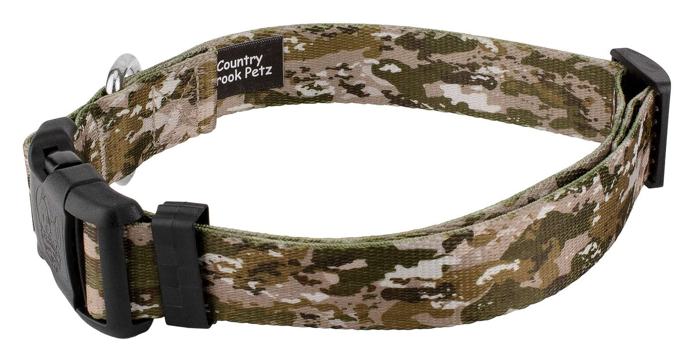 Lure Your Prey With Country Brook Petz Desert Viper Camo Deluxe Dog Collar Bold Greens, Browns, And A Splash Of White, Create A Color Pattern That Is Indicative Of Desert Tones The Chameleon-Like Camo Allows You To Hide In Plain Site And Creates An Ideal Cover For Sparse Foliage And Desert Rock Small And Sporadic Colors Create The Illusion Of Mimicry And Allow Your Pup To Blend In Naturally With Their Surroundings These Deluxe Patterned Collars Are A Safe, Comfortable, Collar Made Right Here In The Usa We Like To Give You The Assurance That Our Dog Collars Are Made To Last So We Construct With Ykk Contoured Side Release Buckles, Strong Polyester Webbing, Heavy-Duty Wide-Mouth Triglides, And Heavy Welded D-Rings Our Polyester Collars Are Ribbed, Soft, And Sleek To The Touch With A Little Bit Of A Sheen We Make Sure That Your Pet Shines Like The Star They Are We Know That You Have Your Petas Comfort And Safety As A Top Priority, So Do We The Extra Small, Mini And Micro Are Still Reliable With A 700 Lb Tensile Strength, Even Though They May Seem Delicate We Want Your Furbaby To Be Able To Show The World Their New Collar Immediately, So Be Sure To Measure For The Right Size You Can Check This Out By Using A String, Or Tape Measure, To See Where The Collar Will Fit Snugly And Comfortably On Your Dogas Neck These Stylish Prints Work Well With Both Boy And Girl Puppers