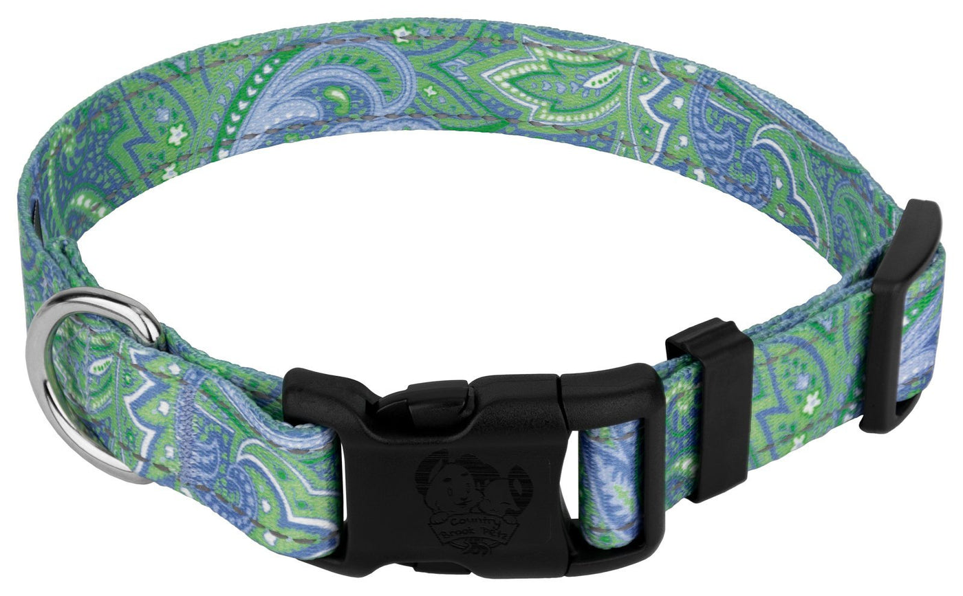 Country Brook Petz - Deluxe Green Paisley Reflective Dog Collar Collection Featured Night Safe Designs (1 Inch, Medium)