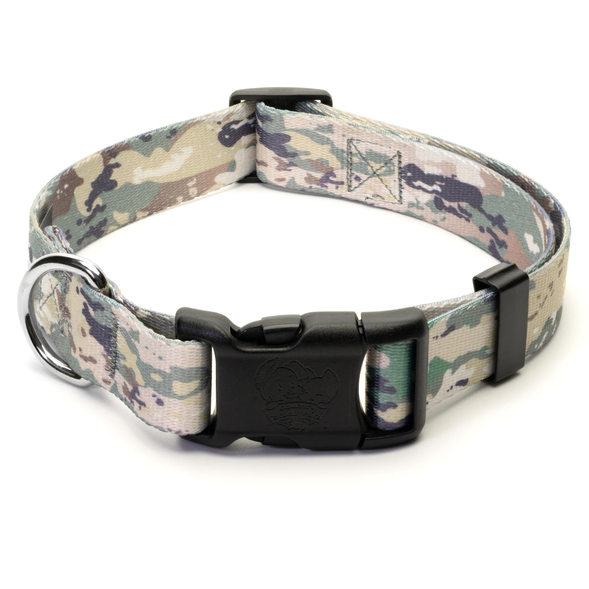 Strike your prey with Country Brook Petz Mountain Viper Camo Deluxe Dog Collar. Earthy tans, softened greens, and light browns create a color pattern that is indicative of mountain forestry. The chameleon-like camo allows you to hide in plain sight and creates an ideal cover for fallen foliage or piles of leaves. Small and sporadic colors create the illusion of mimicry and allow your pup to blend in naturally with their surroundings. At the heart of this exceptional collar lies our premium polyester webbing, a high-strength and resilient material known for its remarkable durability. Whether your dog is a spirited explorer or a playful companion, this collar can withstand the test of time and keep up with their boundless energy. The sleek and smooth texture of the polyester webbing ensures a gentle touch against your dogs neck, eliminating any discomfort or irritation. Your loyal companion will revel in the luxurious comfort that this collar provides, allowing them to strut their stuff with unmatched confidence. To further elevate the collars functionality, we constructed it with YKK brand buckles, renowned for their exceptional quality and reliability. These buckles are not only stylish but also incredibly secure, giving you peace of mind knowing that your furry friend is always safe and sound. The YKK brand buckles are engineered with precision, featuring a seamless interlocking mechanism that guarantees a secure fit. They are easy to use and offer a hassle-free experience, allowing you to fasten and release the collar with a simple snap effortlessly. Whether youre preparing for a leisurely stroll or an exciting outdoor adventure, this collar ensures quick and convenient handling. Besides its undeniable elegance, our Deluxe Dog Collar is also equipped with a sturdy welded D-ring for easy leash attachment.